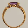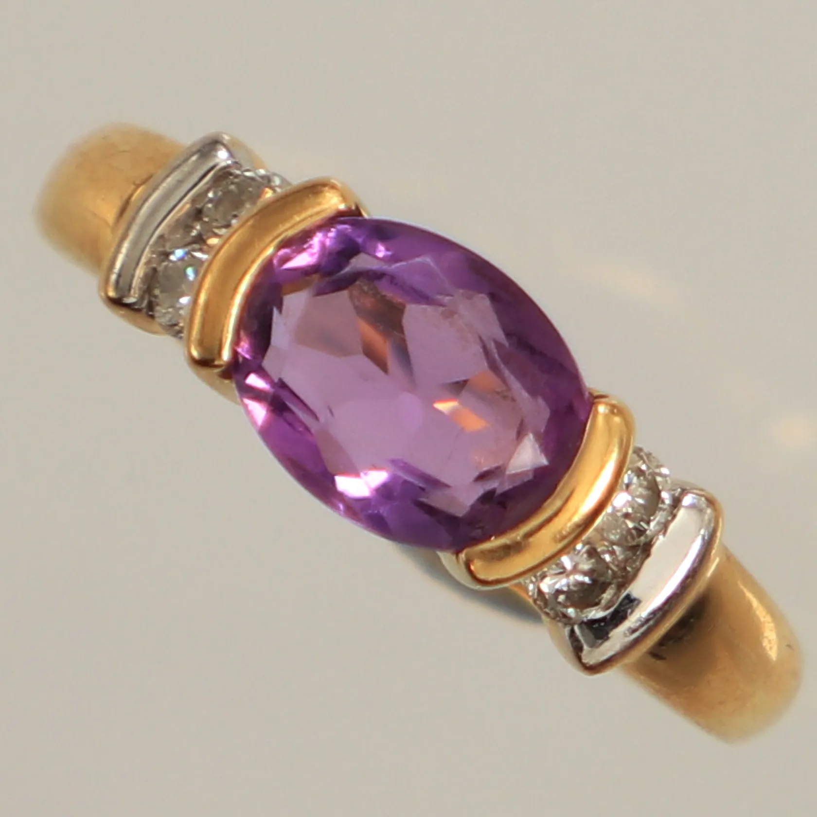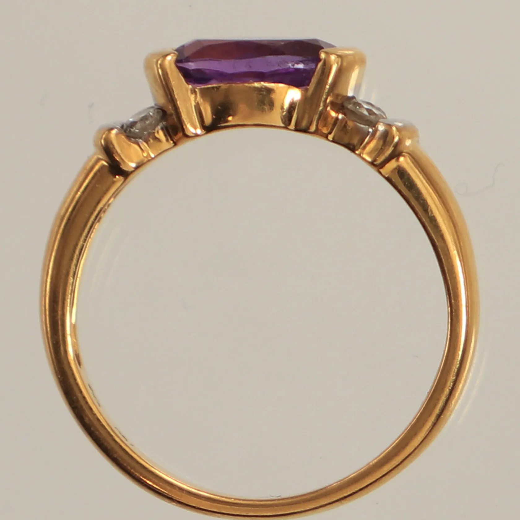 Ring med lila sten samt diamanter ca 4x 0,03ct, stl 16, bredd ca 5,9mm, 18K Vikt: 2,6 g.