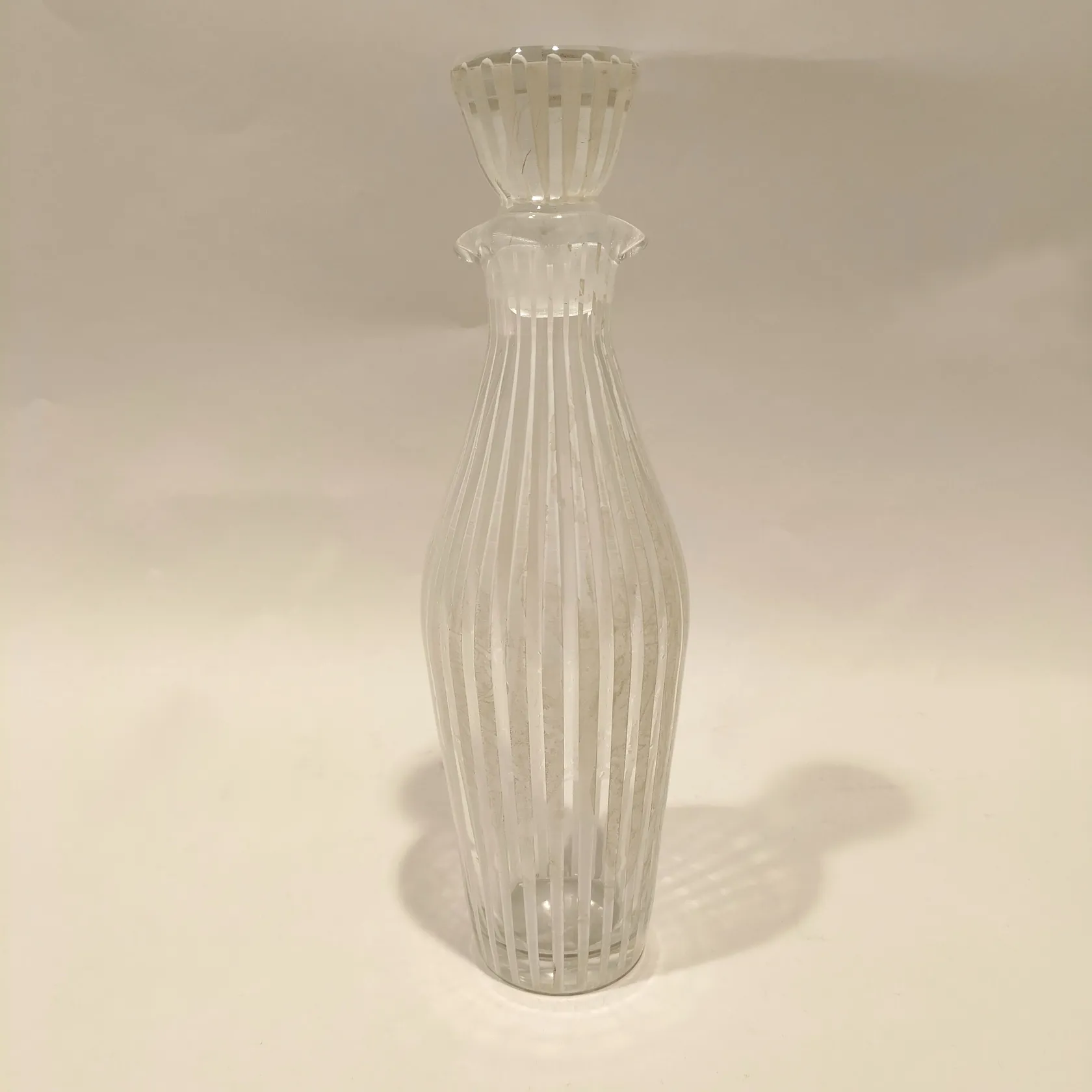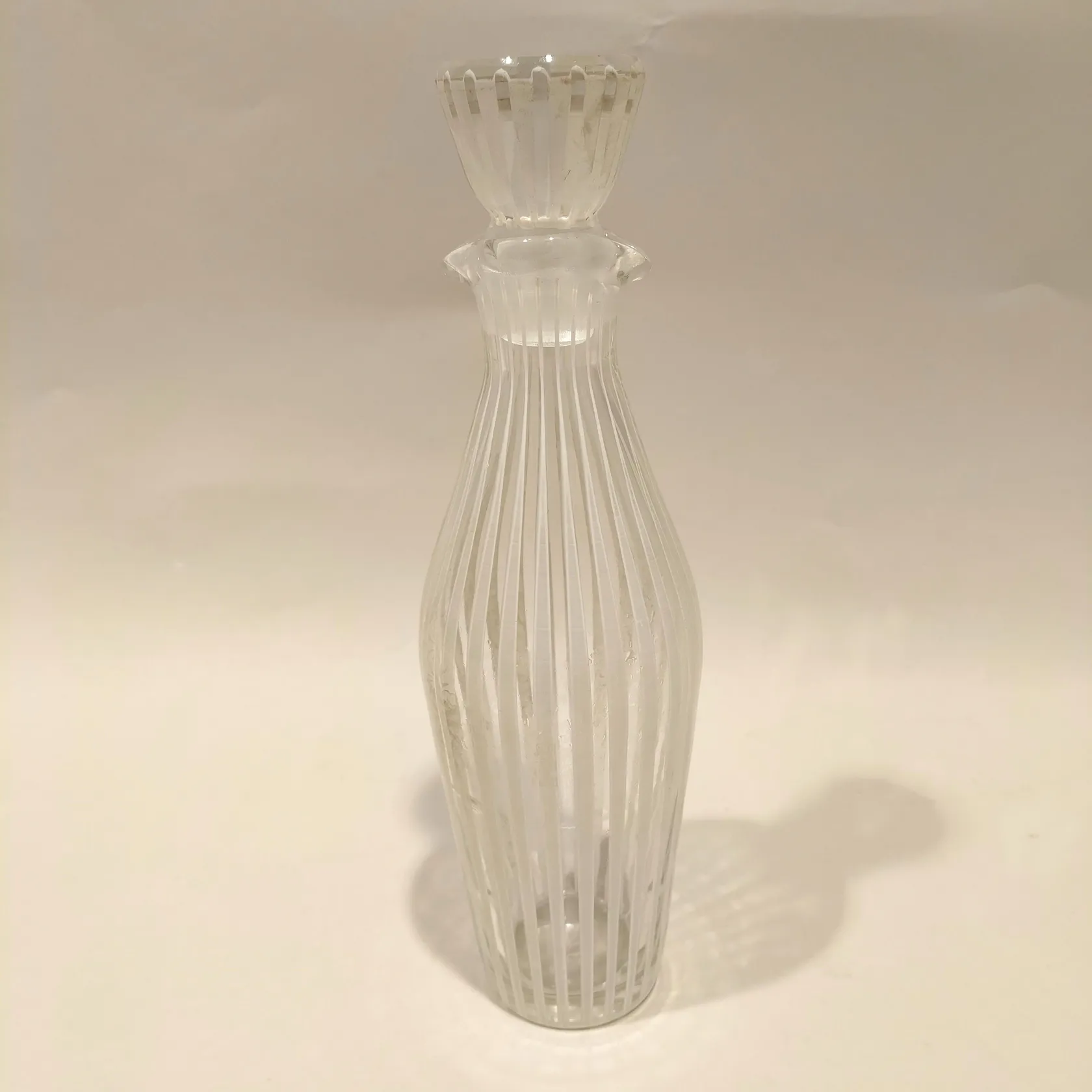 Karaff med propp, Strikt, formgiven av Bengt Orup för Johansfors, höjd ca 28cm, bruksslitage, smutsig, repig, märkt 34. Skickas med postpaket.