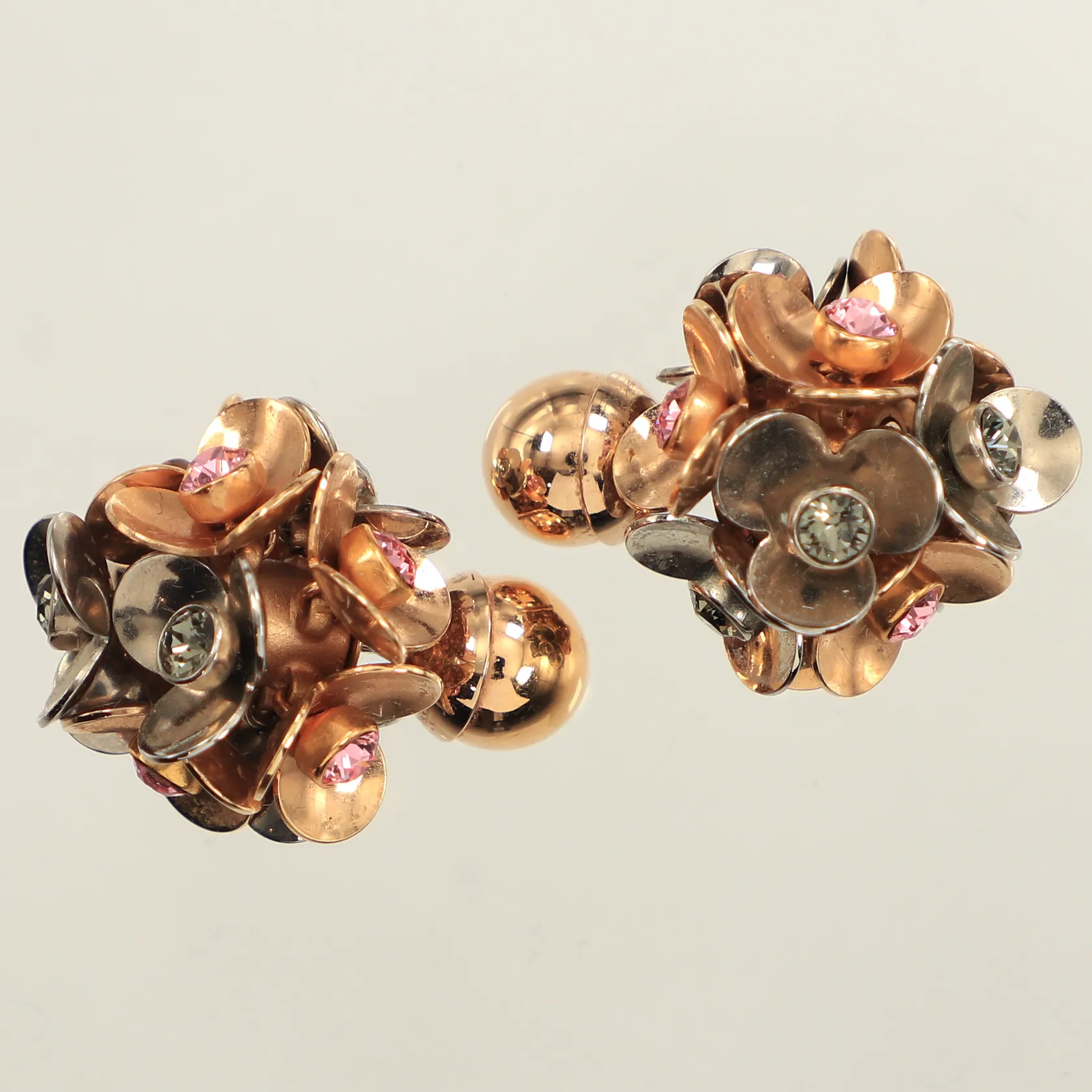 Ett par örhängen Dior, Tribale Crystal Two Tone Flower Stud Earrings, bredd ca 17mm, gulmetall, dustbag, kartong.