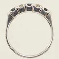 Ring med diamanter 2x ca 0,10ct, totalt 0,20ct enligt gravyr och blå stenar, möjligen safir, stl 16, bredd 3,7mm, Schalin, vitguld, 18K Vikt: 4,6 g.