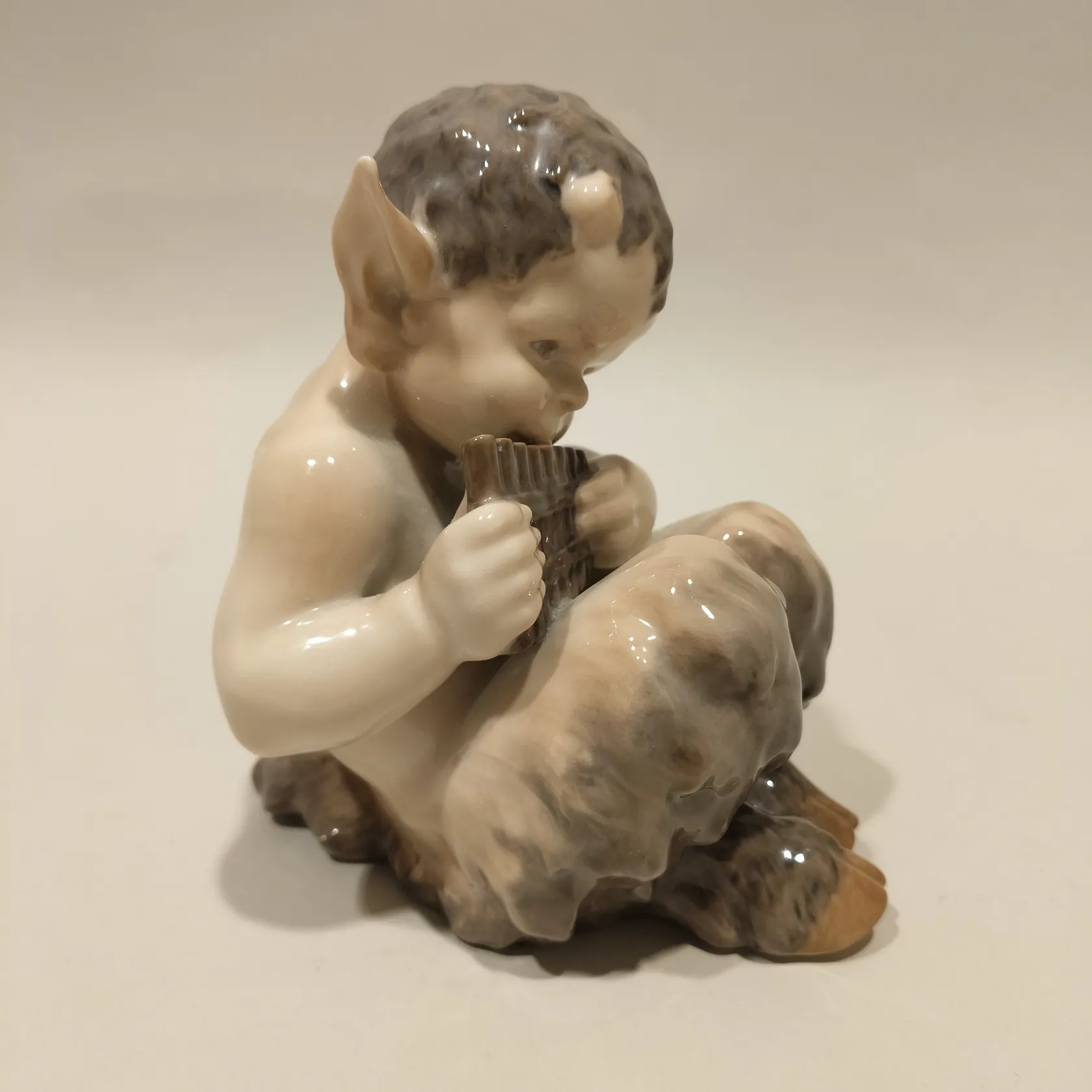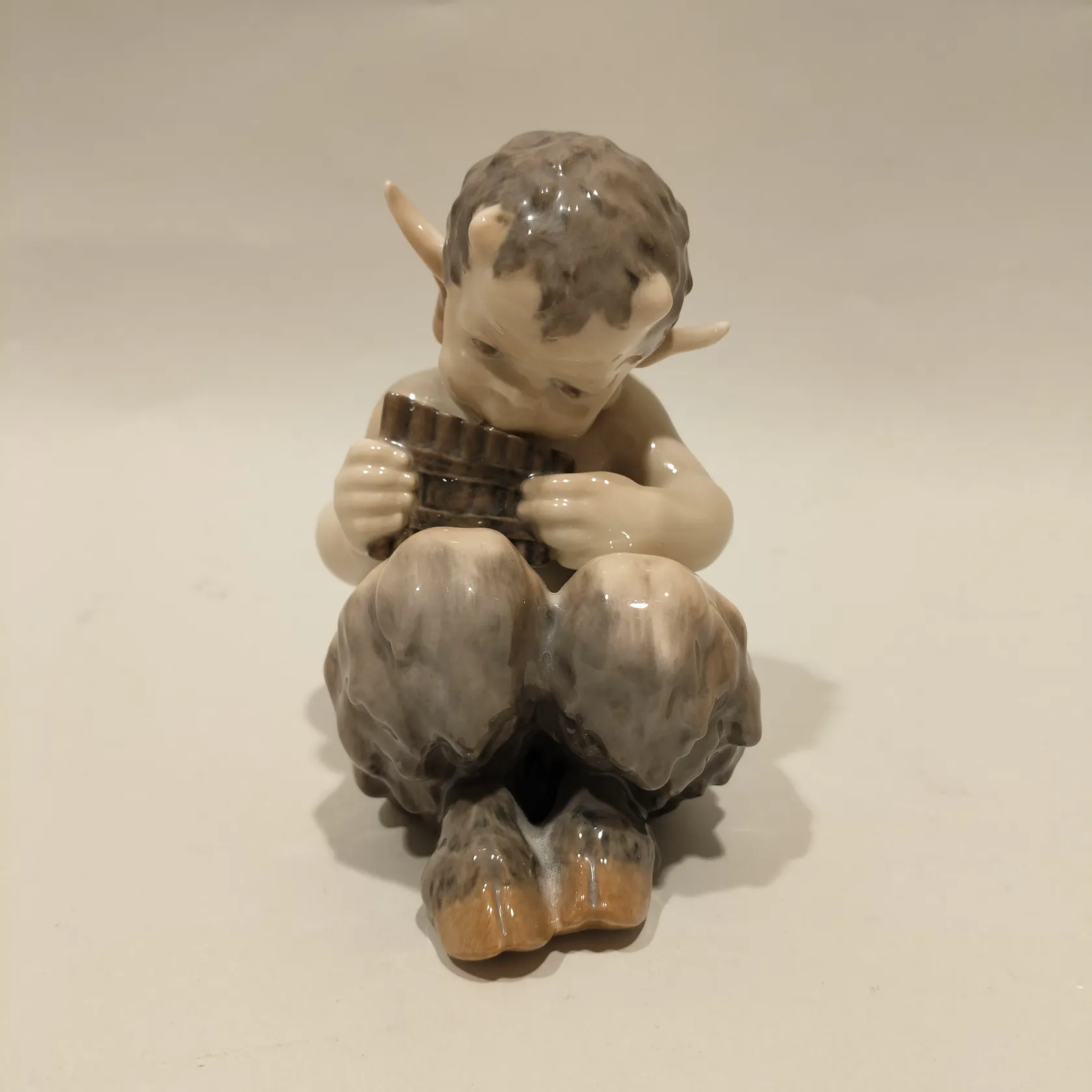Figurin, Royal Copenhagen, faun med panflöjt, Christian Thomsen, år 1952, nummer 1736, höjd ca 14cm, porslin