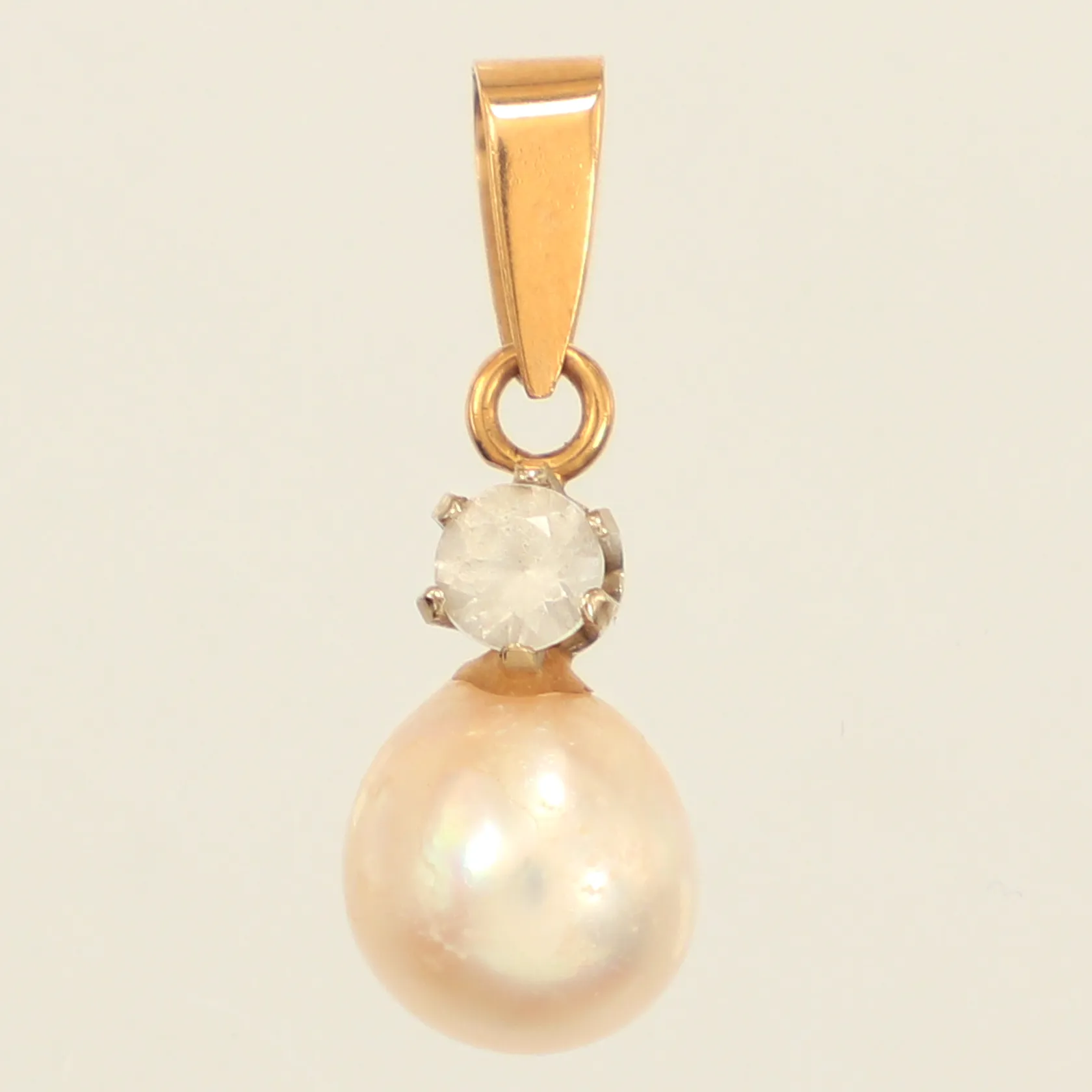 Hänge pärla, vit sten, längd 20,6mm, bredd 7,6mm, färgbortfall, 18K Vikt: 1,3 g.