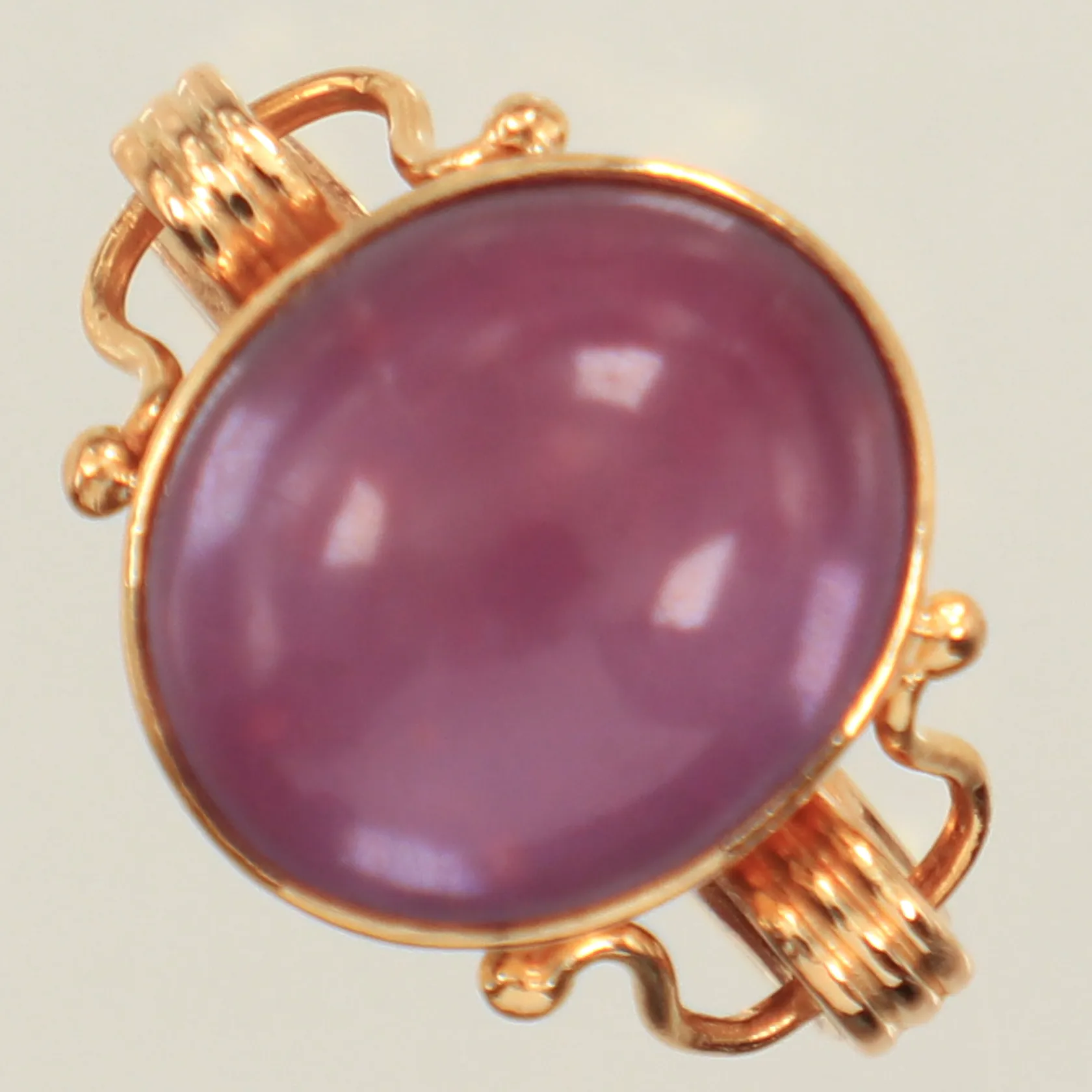 Ring lila sten, troligen folierad, asterism, stl 17, bredd 14,5mm, Guldvaruhuset Aktiebolag, år 1947, 18K Vikt: 5,9 g.