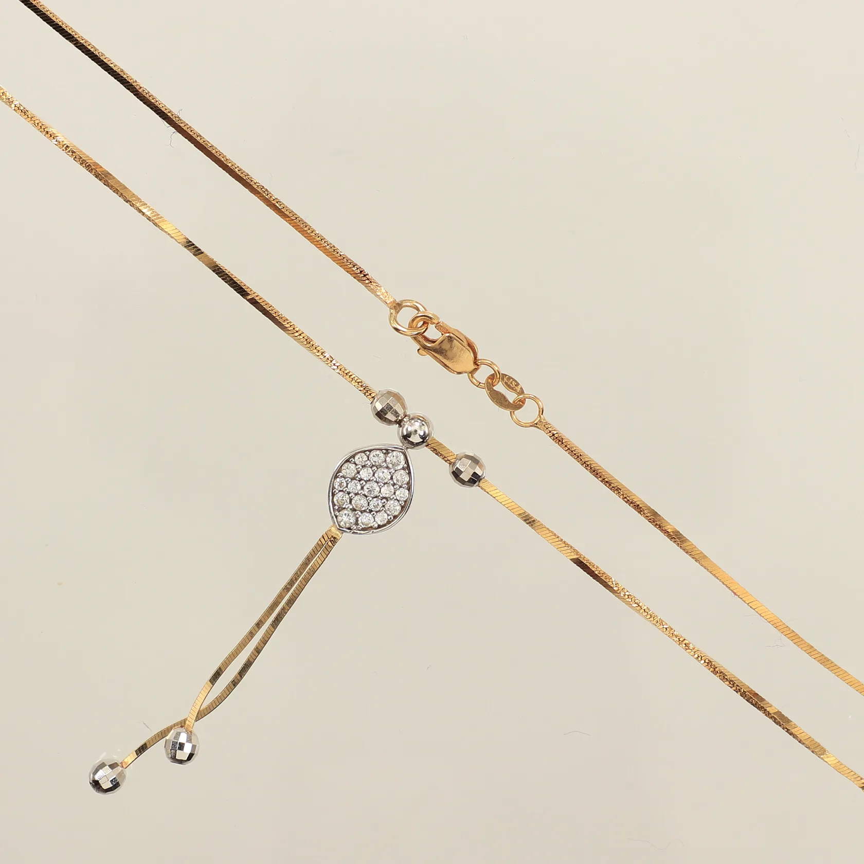 Collier, längd 44cm, bredd 0,9-45mm, vita stenar, ojämn länk, 14K Vikt: 5,2 g.