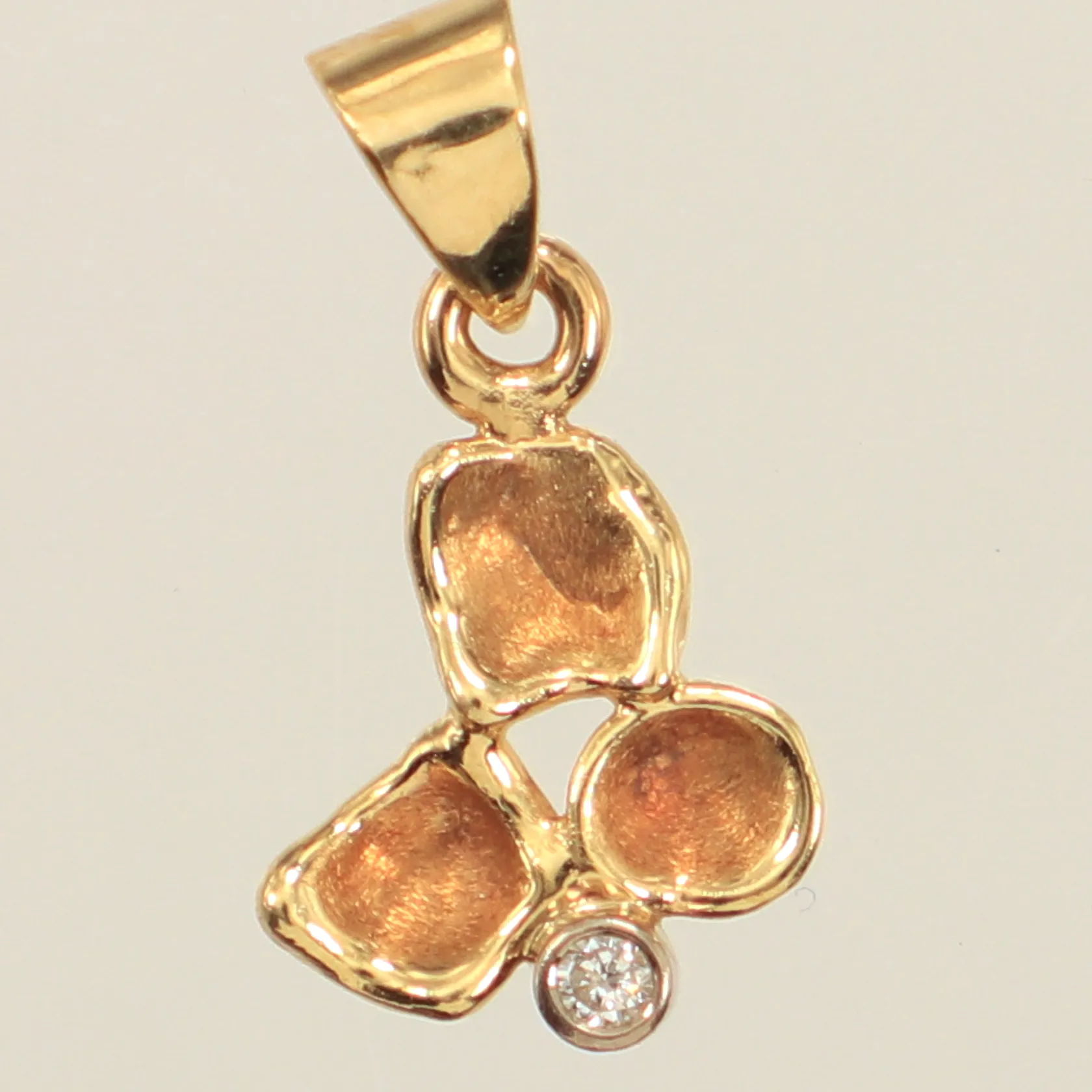Hänge med diamant ca 0,02ct, längd 15mm inkl ögla, bredd 9,8mm, 14K Vikt: 0,9 g.