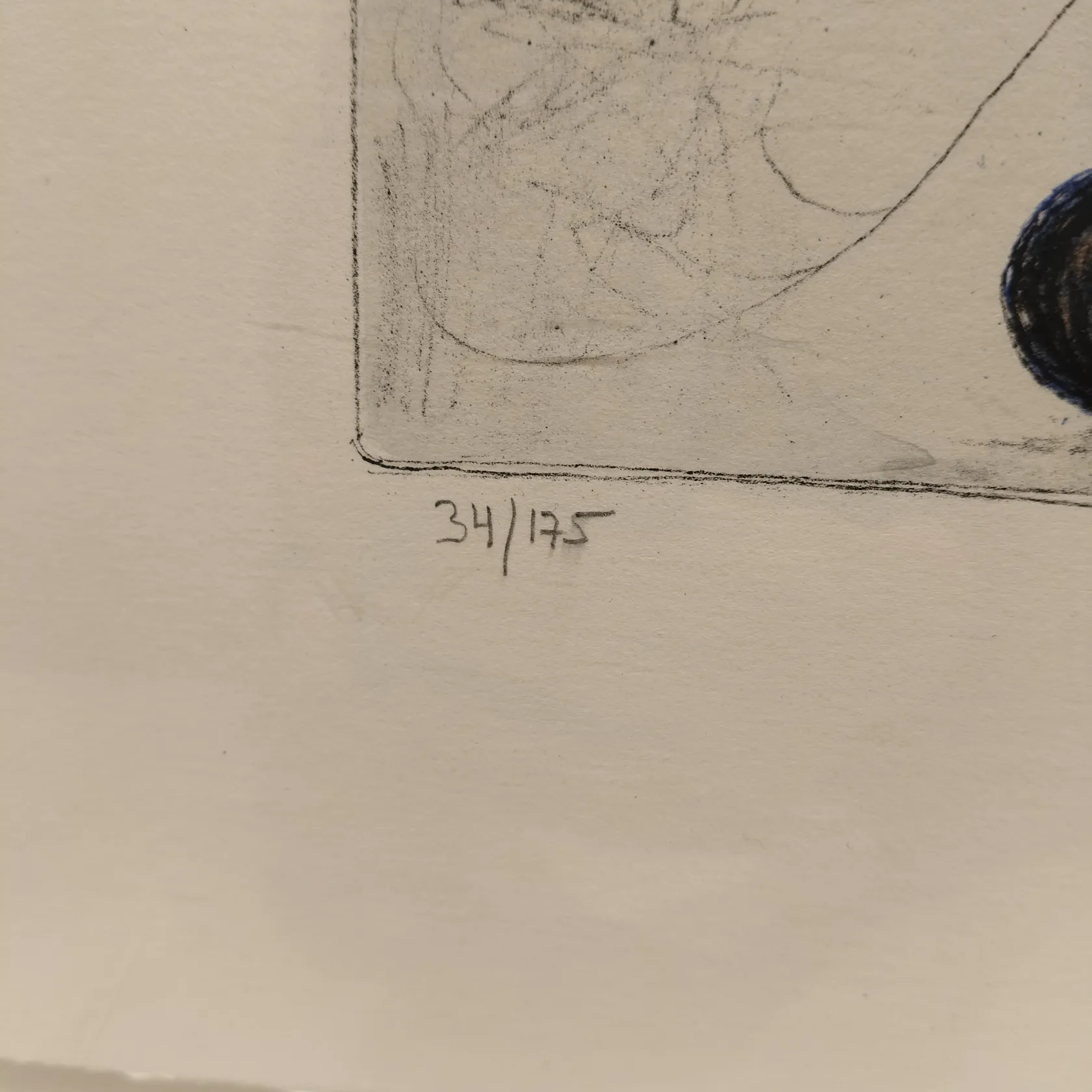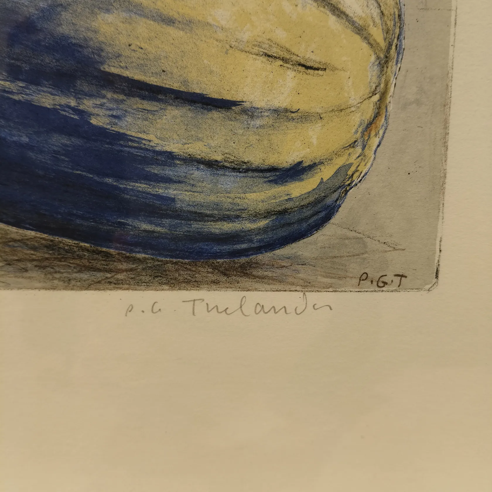 Tavla, litografi, PG Thelanders (1936-), "Pumpa", ur mappen Summa Summarum, signerad och numrerad 34/175, bildmått ca 43x64cm, ej examinerad ur ram. Skickas med postpaket. Omfattas av BUS-avgift.