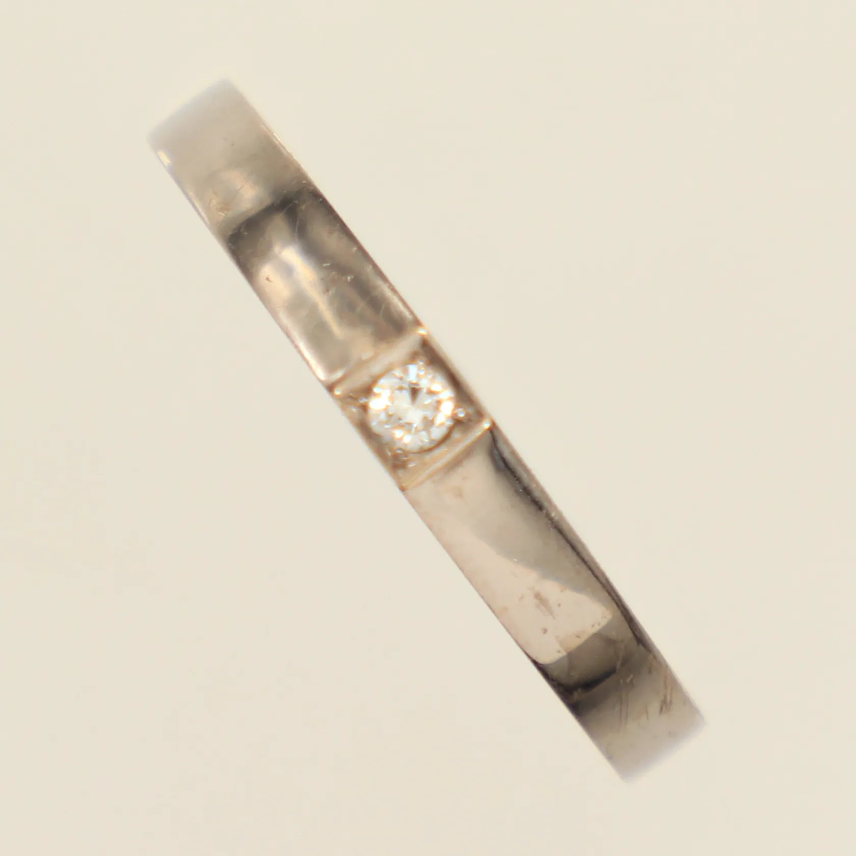Ring med diamant 0,04ct enligt gravyr, stl 18, bredd 2,3-3mm, Stigberg, Heribert Engelbert AB Stockholm 1977, vitguld, 18K Vikt: 3,2 g.