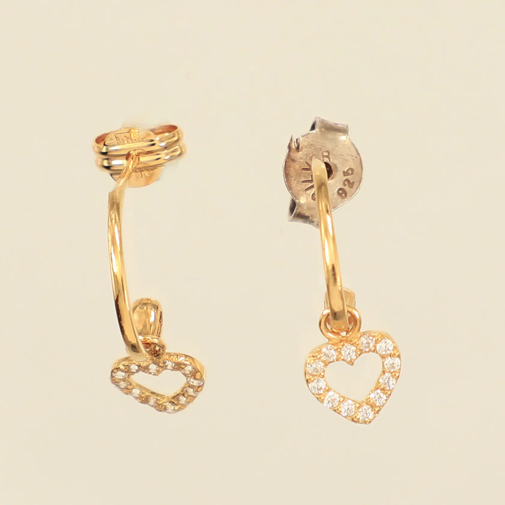 Ett par örhängen, hjärtan, längd 15mm, bredd 1,1-6mm, skev, en snurrebuss i silver, 18K Vikt: 1,1 g.