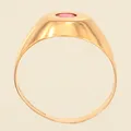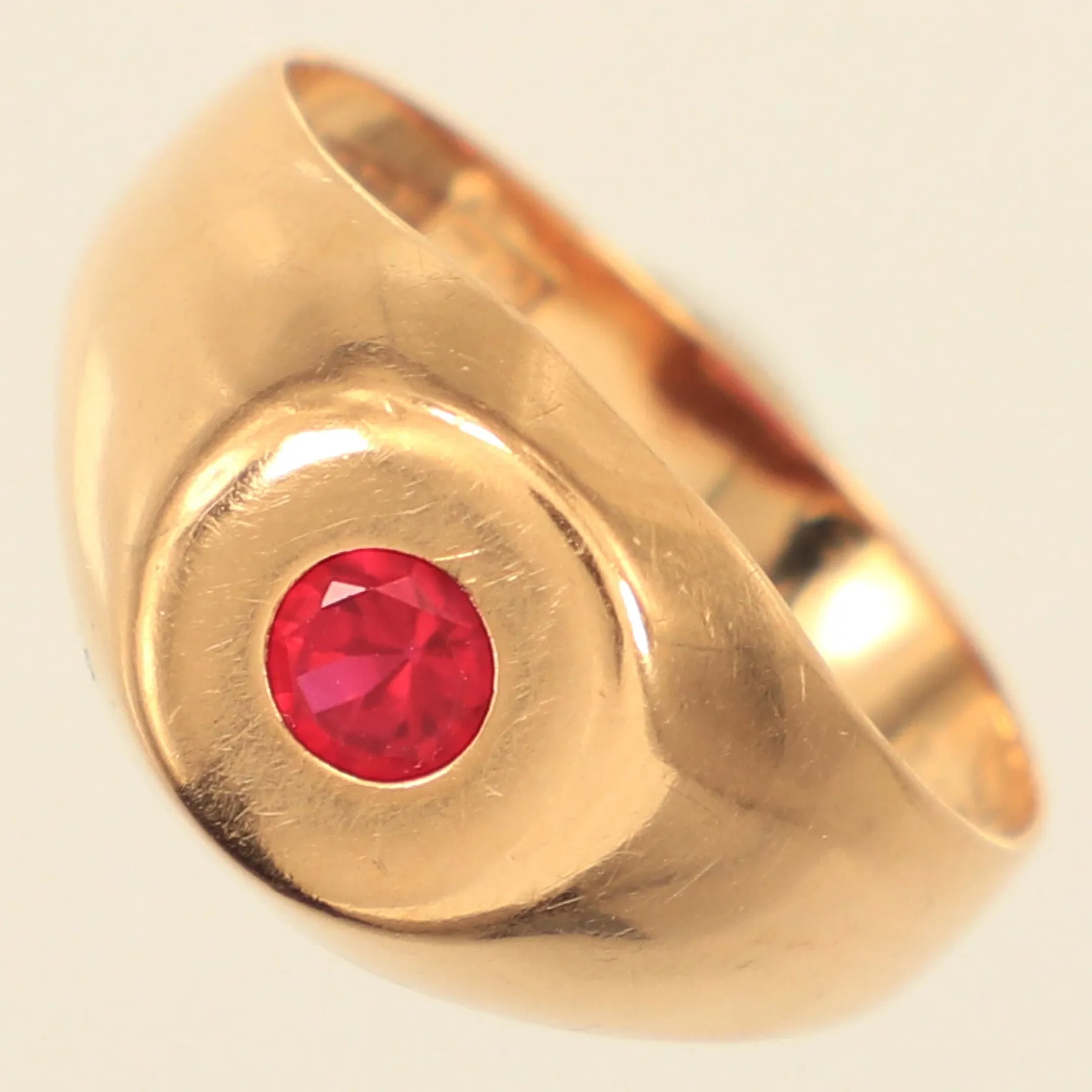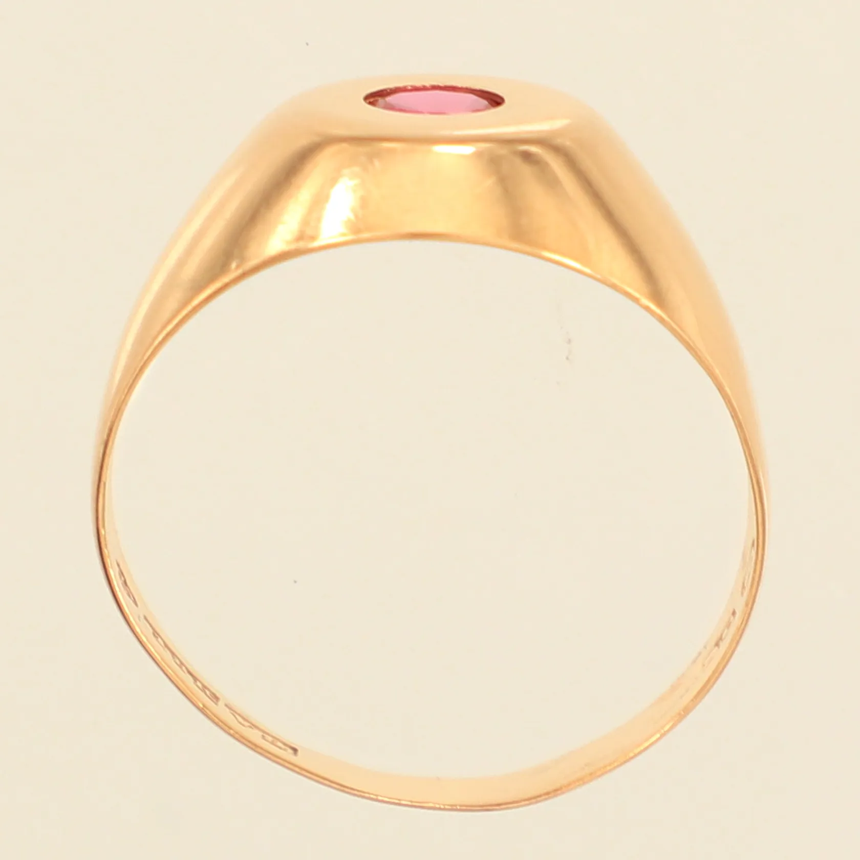 Ring med röd sten, stl 17½, bredd 3,2-10,5mm, Ceson Guldvaru Ab Göteborg 1971, 18K Vikt: 2,2 g.