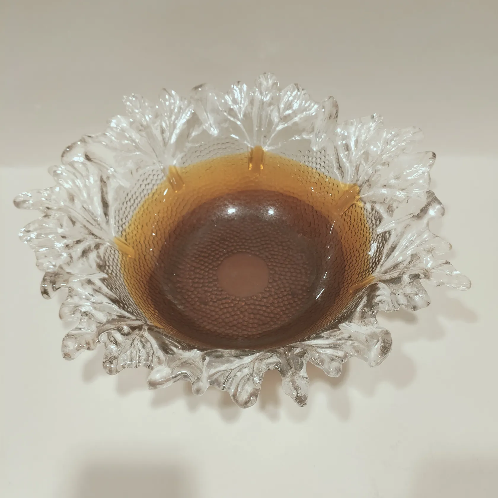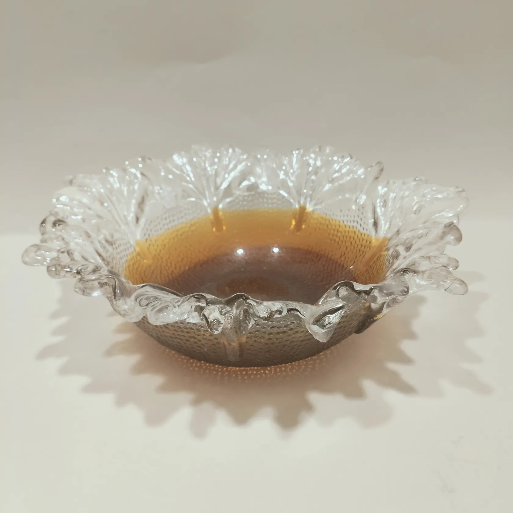 Skål, Humppila, Pertti Santalahti, Finland, höjd ca 11,5cm, bredd 35cm, bruntonat glas, repor, omärkt. Skickas med postpaket.