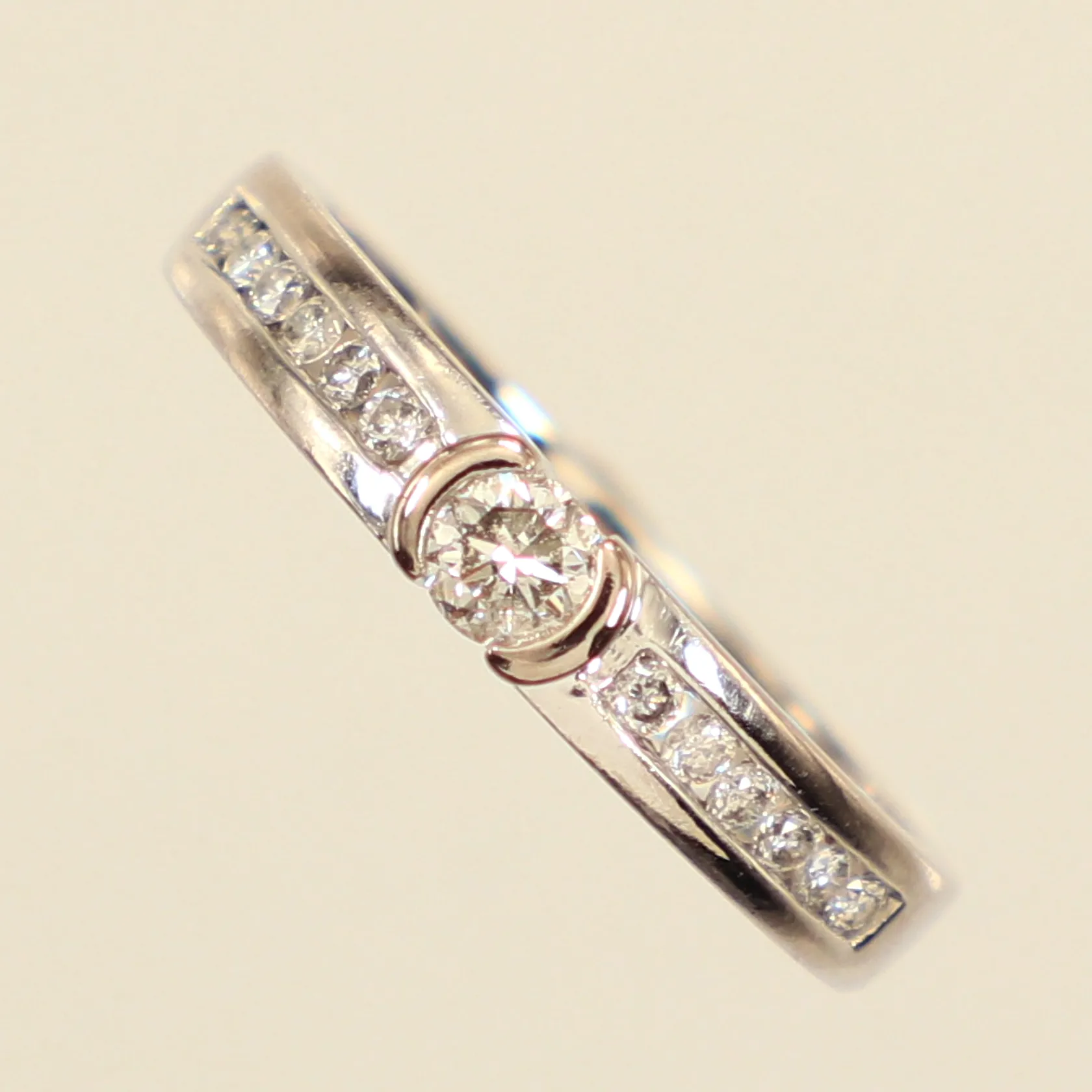Ring med diamanter ca 1 x 0,16ct+ 12 x 0