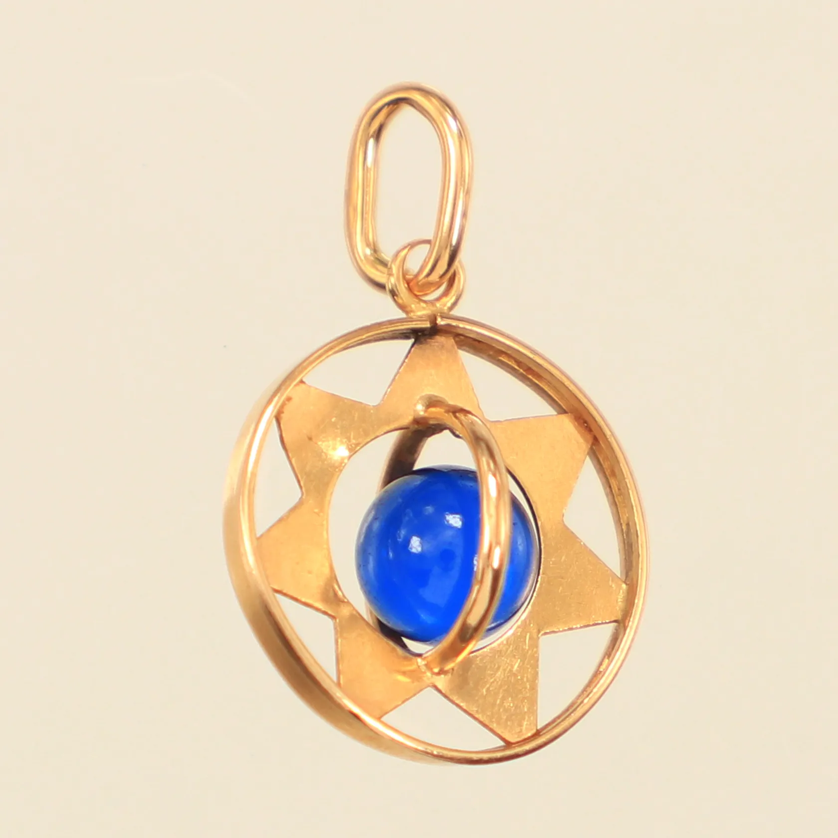 Hänge med blå sten, längd 19,5mm inklusive ögla, bredd 12,5mm, 18K Vikt: 1 g.