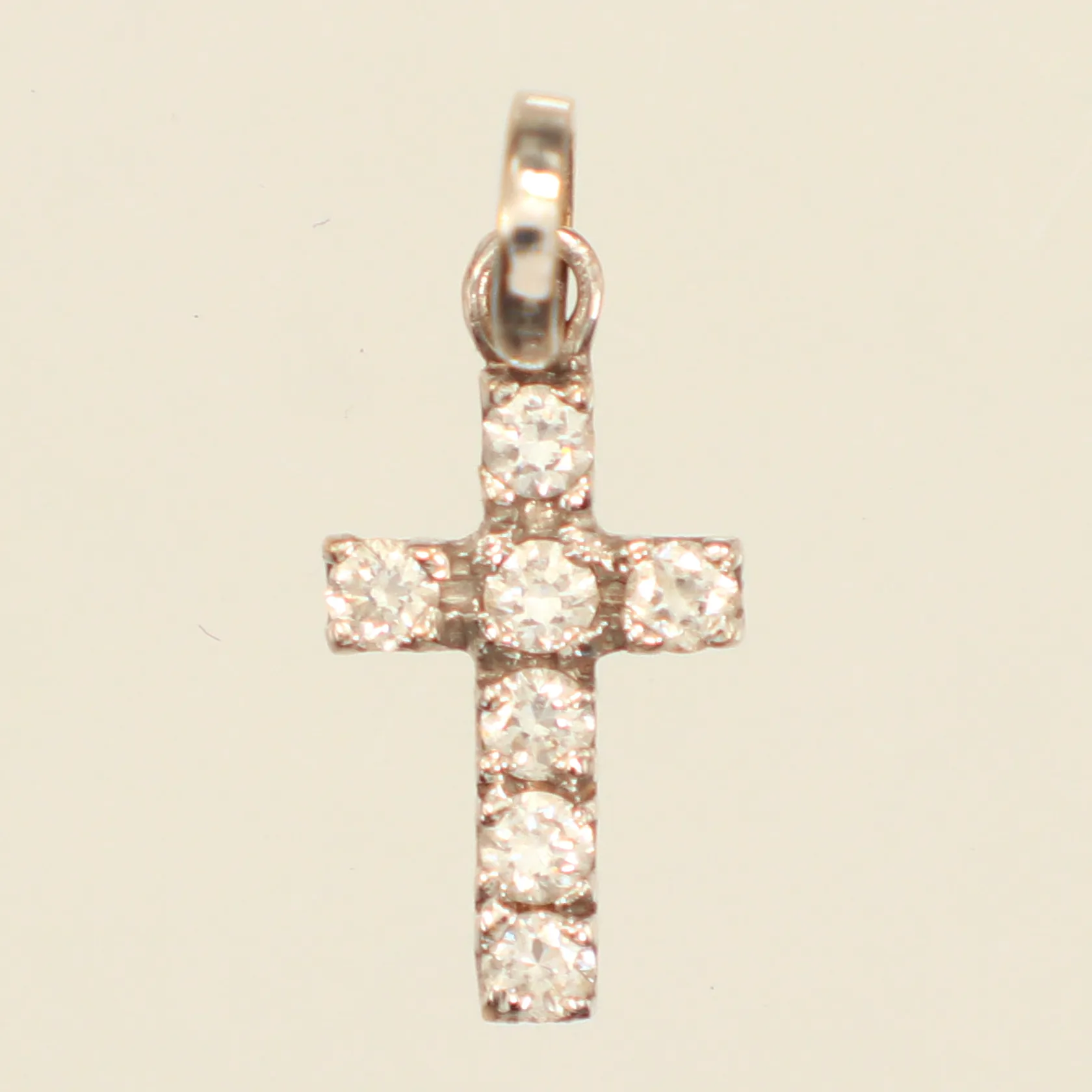 Hänge med vita stenar, längd inkl ögla ca 20, bredd ca 2,4-8mm, vitguld, 18K Vikt: 0,8 g.