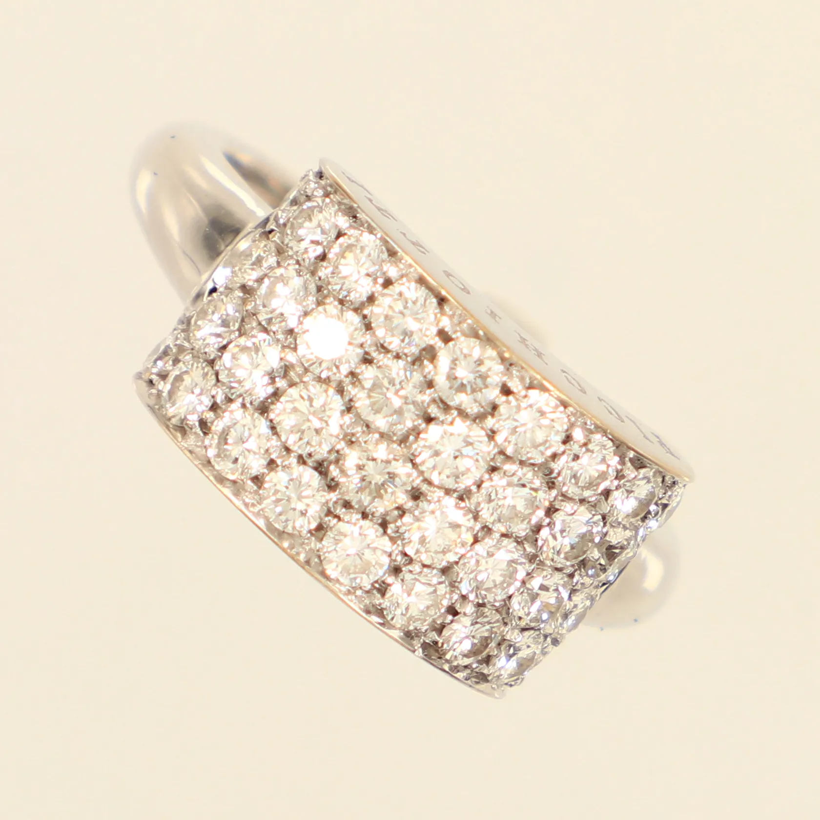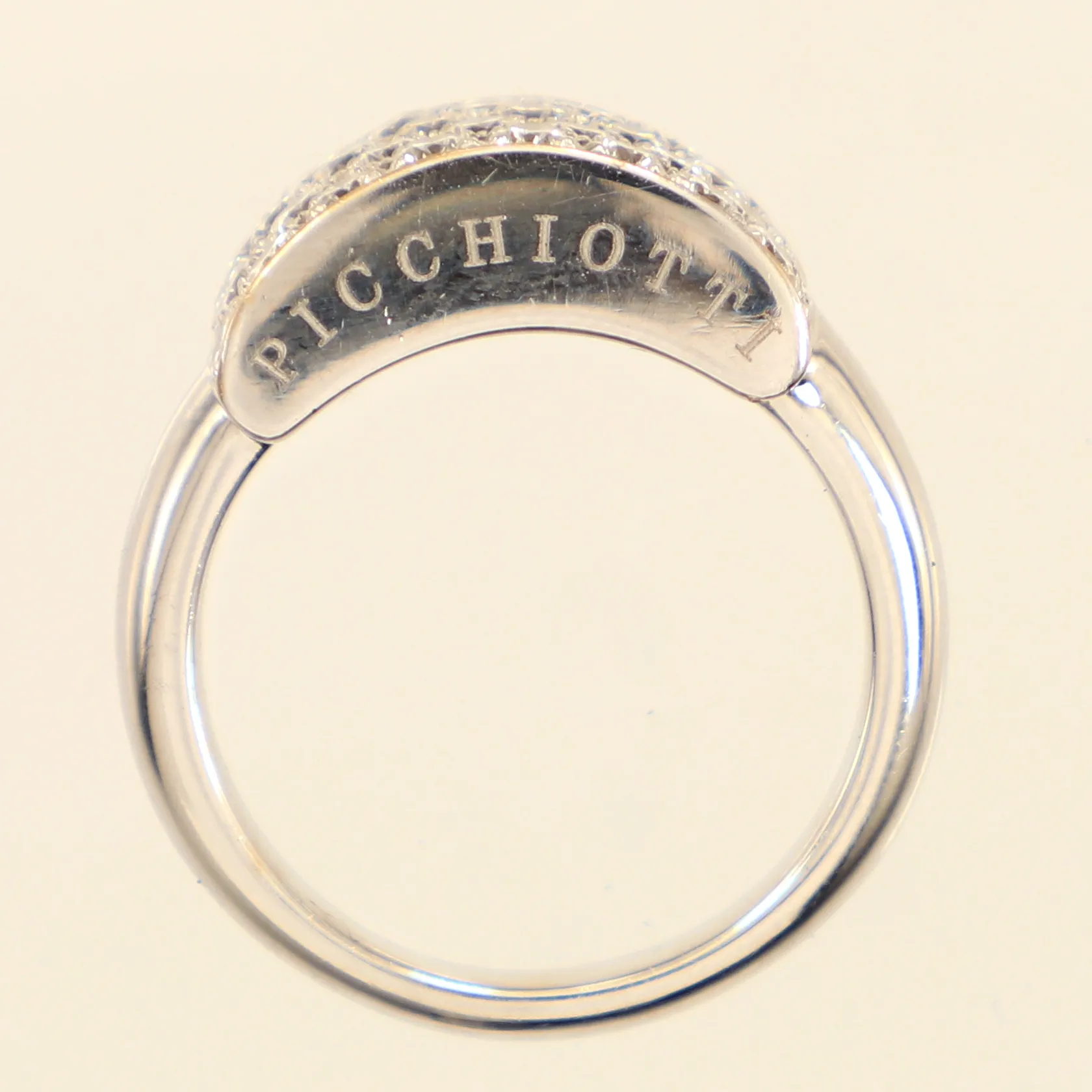 Ring med diamanter 34 x ca 0,02-0,05ct, stl 18¼, bredd ca 3-10mm, vitguld, design Picchiotti, cert, ask, 18K Vikt: 9,2 g.