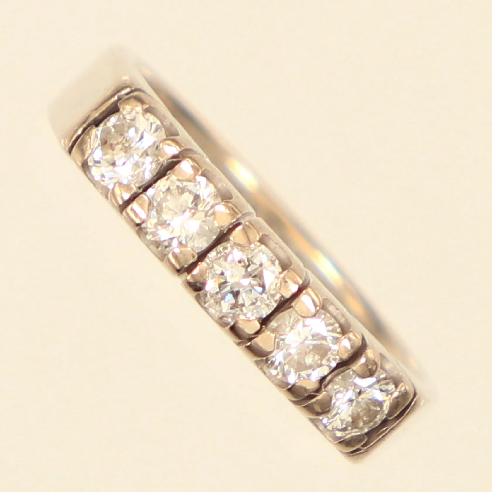 Ring, diamanter 5xca0,10ct enligt gravyr, stl 15¼, bredd 3,6mm, gravyr, vitguld, 18K Vikt: 4,4 g.