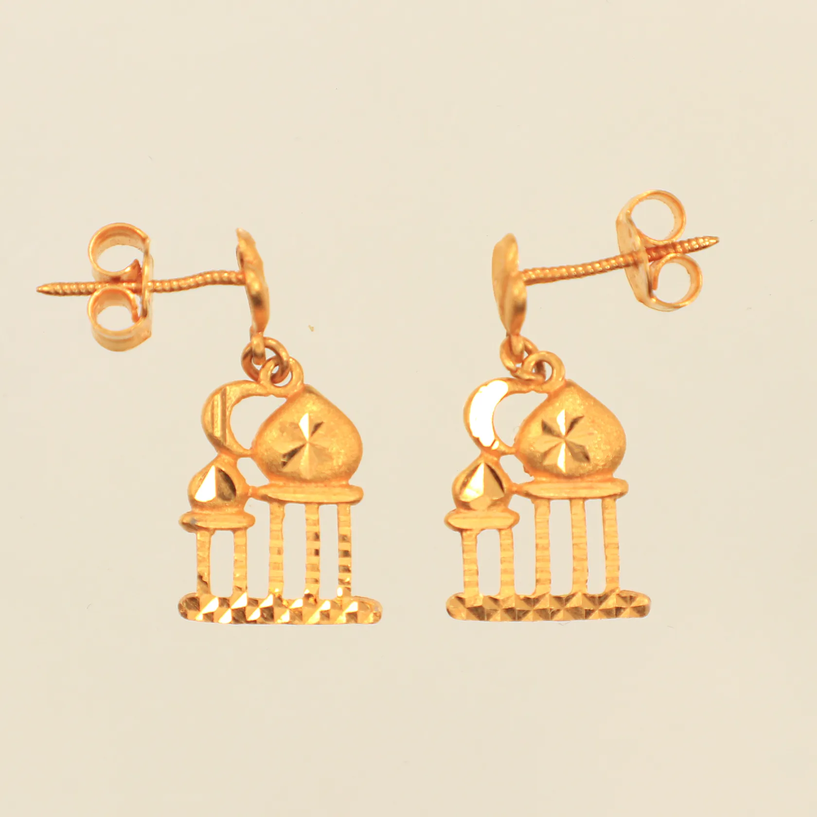 Ett par örhängen, längd 21mm, bredd 12mm, stift något skeva, 22K Vikt: 4,5 g.