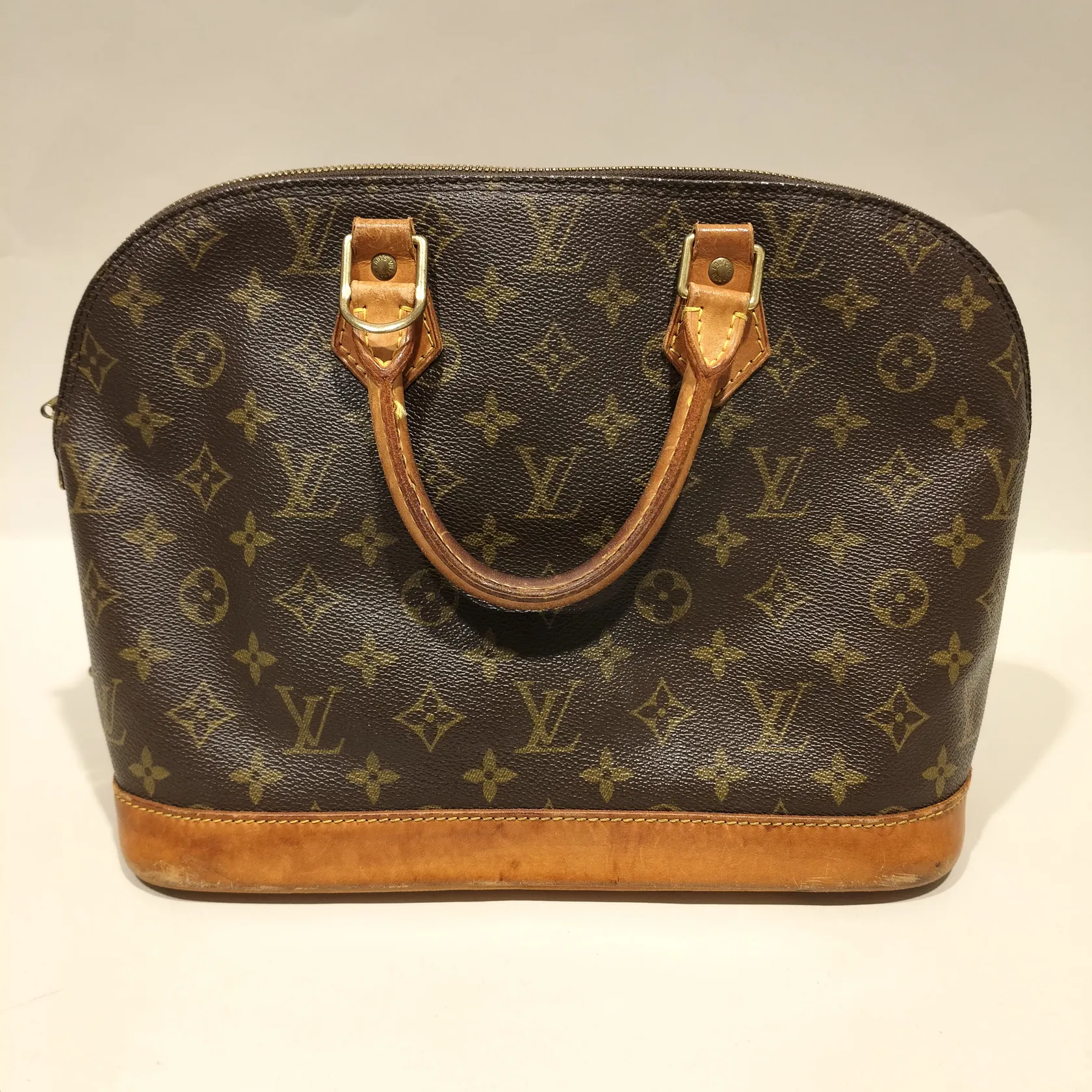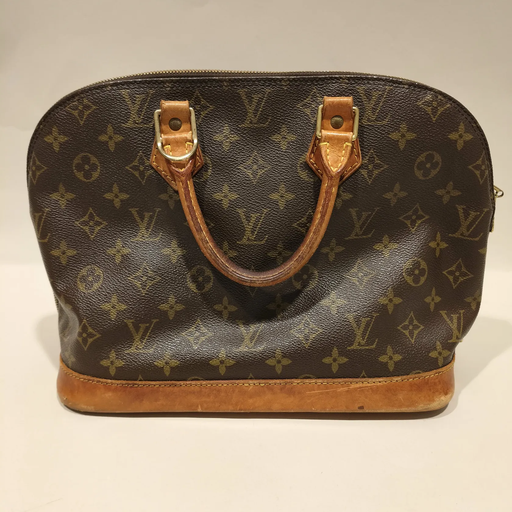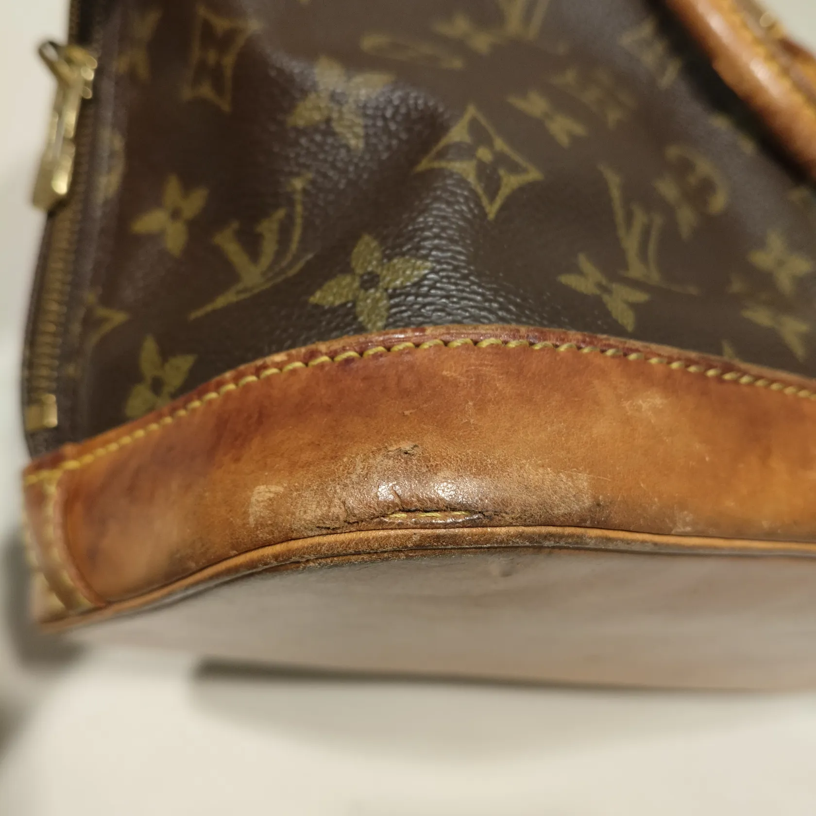 Väska, Louis Vuitton Alma, monogramcanvas, datumkod; VI0936, mått ca 16x24x34cm, slitage, fläckar, trögt lås samt dragkedja, sömmar har släppt, troligen 1996 made in France, inga tillbehör Skickas med postpaket.