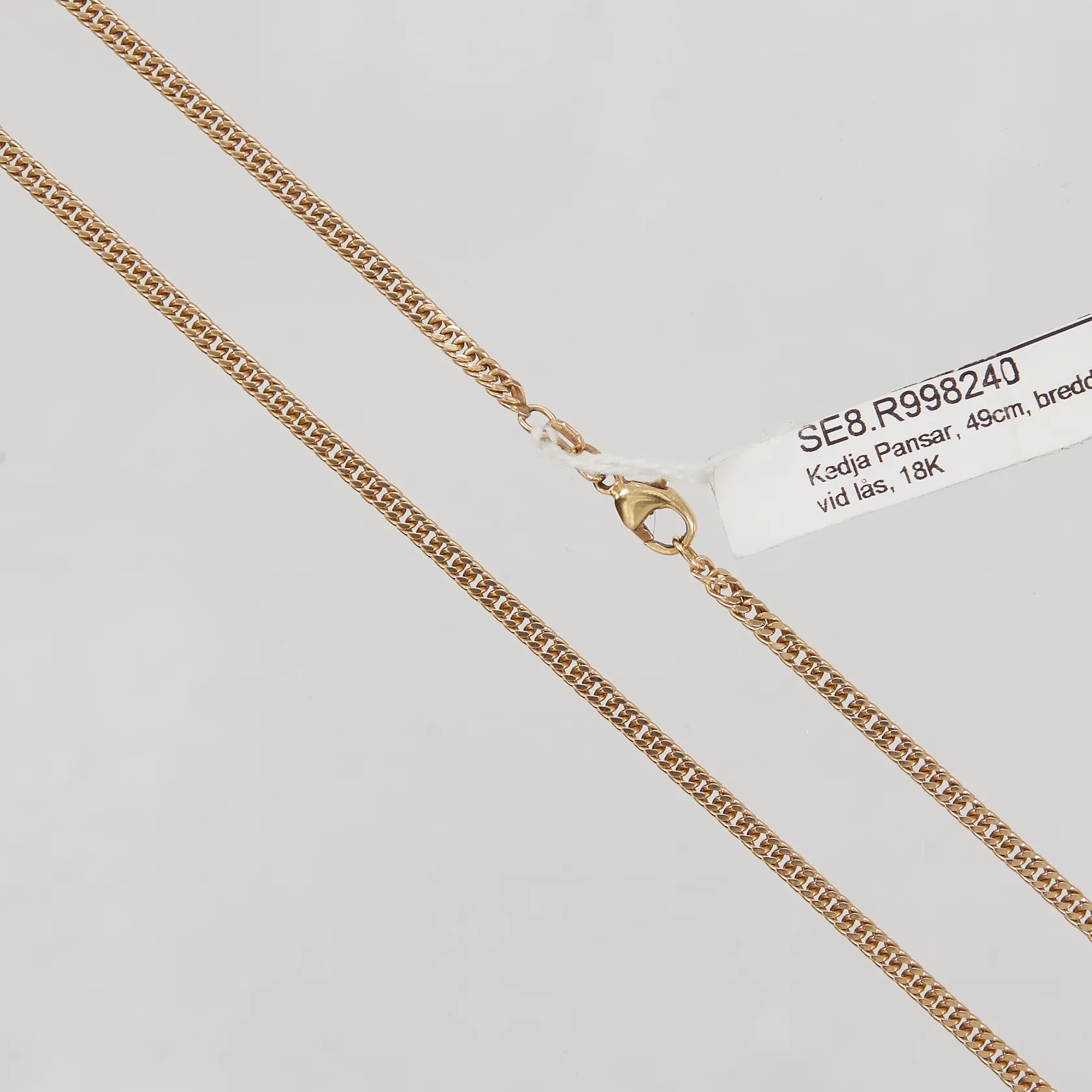Kedja Pansar, 49cm, bredd 2,9mm, GFAB, lödning vid lås, 18K Vikt: 15 g.