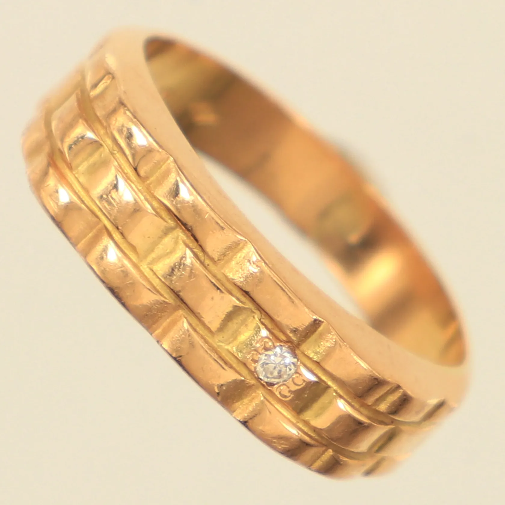 Ring med vit sten, stl 18, bredd ca 4-6mm, repig, 18K Vikt: 3,5 g.