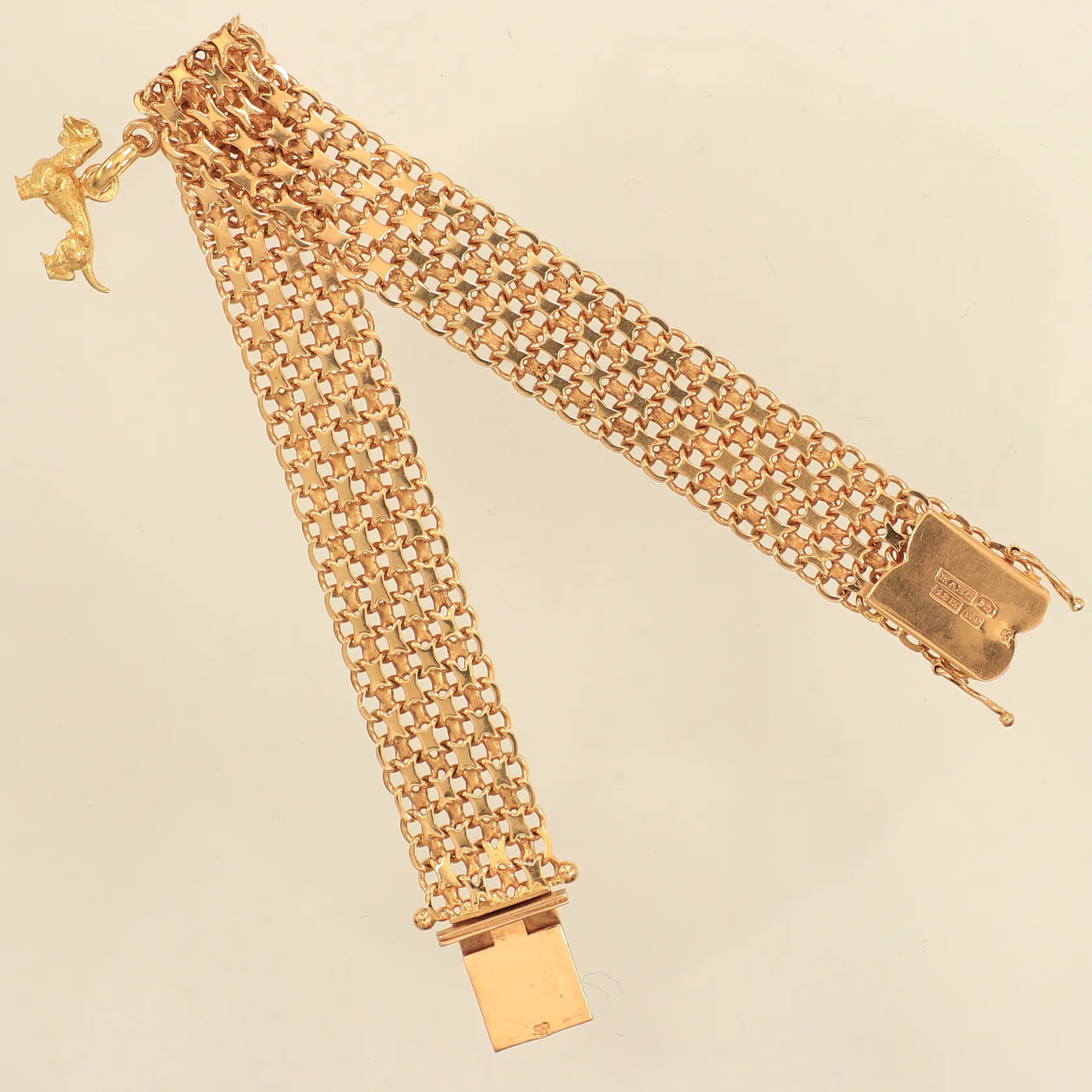Armband X-länk med berlock, bredd ca13mm, Ceson Guldvaru Ab, år 1963, 18K Vikt: 28,7 g.
