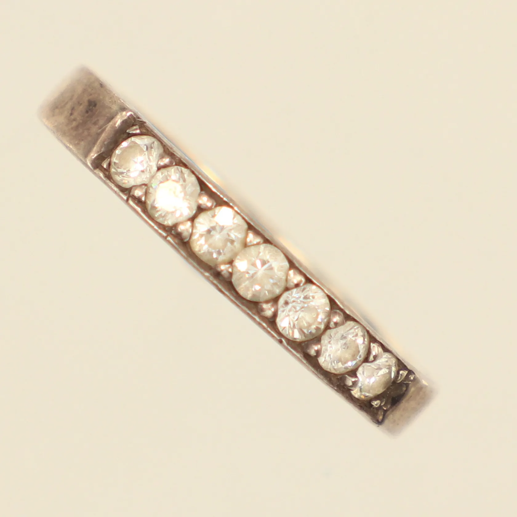 Ring med vita stenar, stl 19, bredd ca 3,3mm, 925/1000 silver Vikt: 2,4 g.