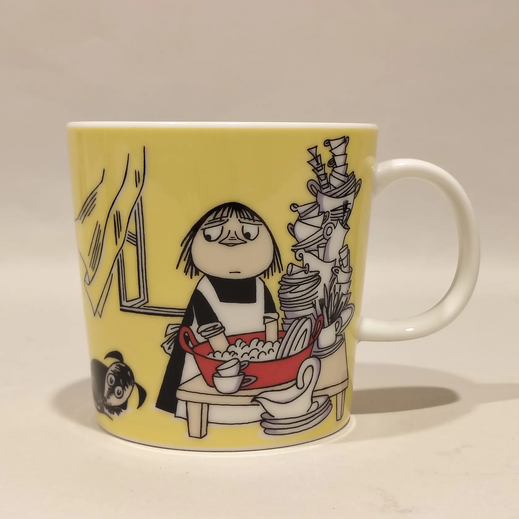 Muminmugg, Misan, Gul, Arabia, Finland, höjd 8cm, Ø8cm, märkt QC0221, porslin