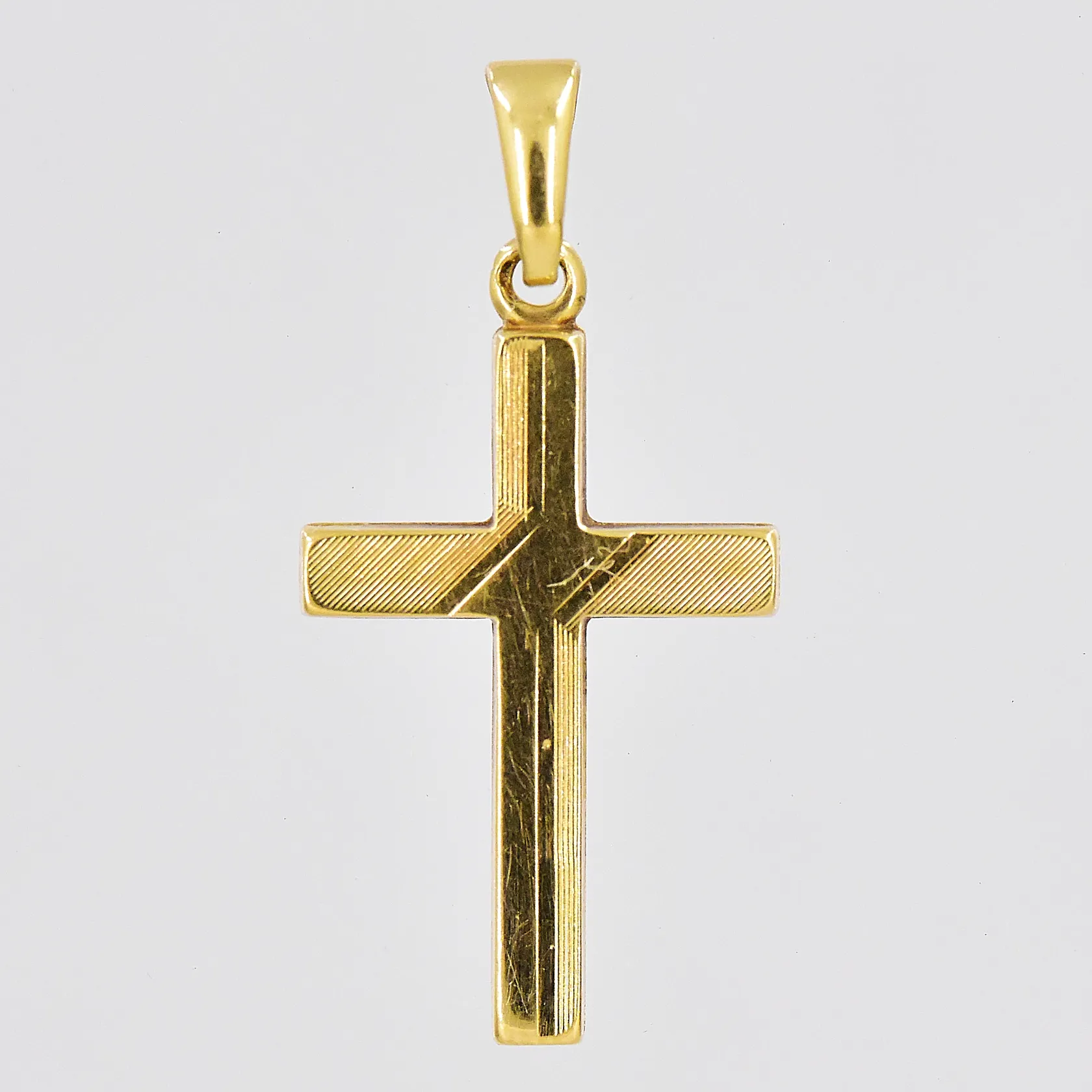 Hänge kors, 14x28mm inklusive ögla, ihålig, 18K Vikt: 0,7 g.