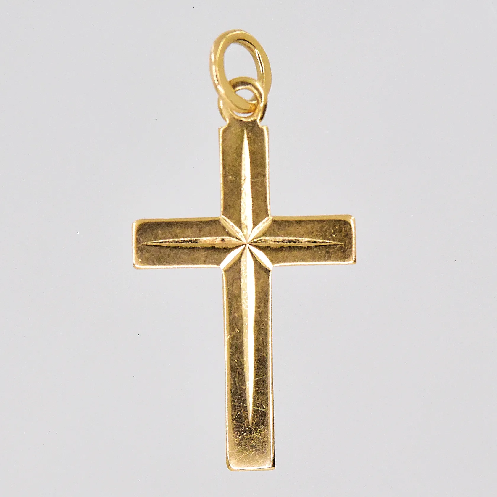 Hänge kors, ca 13x25mm inklusive ögla, 18K Vikt: 0,7 g.