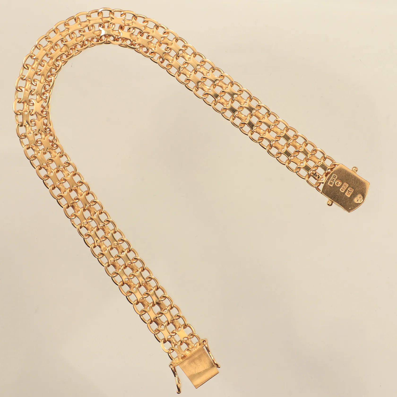 Armband X-länk, längd 19,5cm, bredd ca 10mm, Gustavssons Guldsmedja B, år 1966, 18K Vikt: 17,2 g.