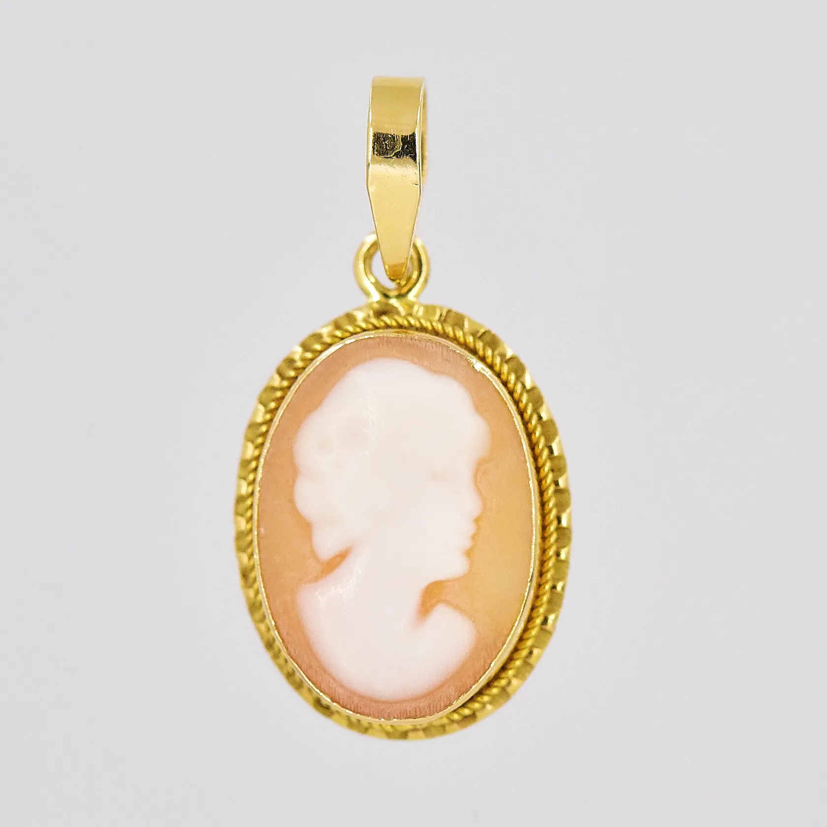 Hänge med camé, ca 12x22mm inklusive ögla, 18K Vikt: 1,8 g.