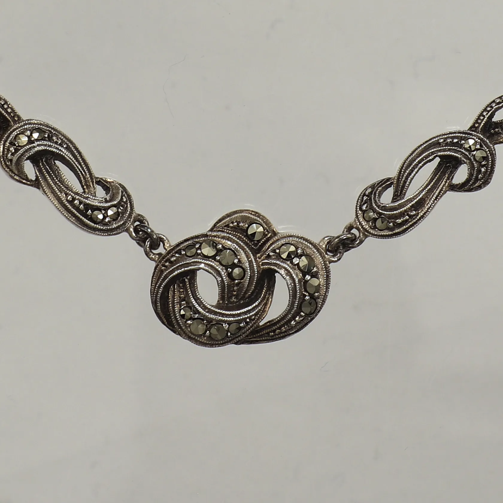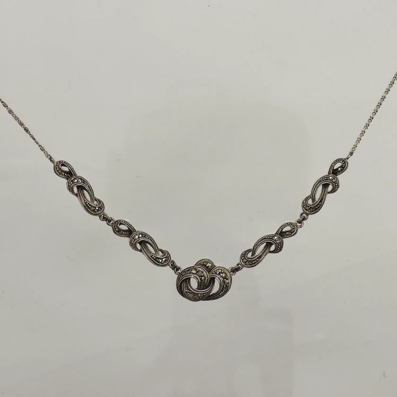 Collier markasiter, längd 42cm, bredd 1,2mm-13mm, silver Vikt: 9,9 g.