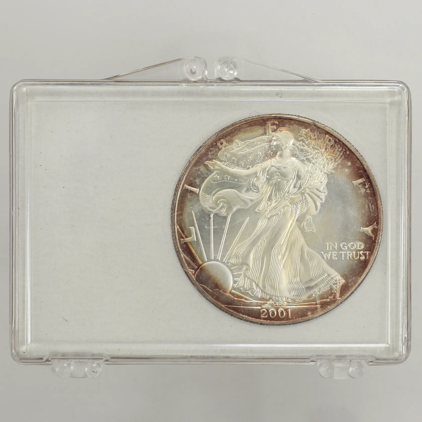 Mynt, Silver Eagle, One dollar, USA, Liberty in God We Trust, 2001, plastetui, 1 oz, 999/1000 silver Vikt: 31,3 g.