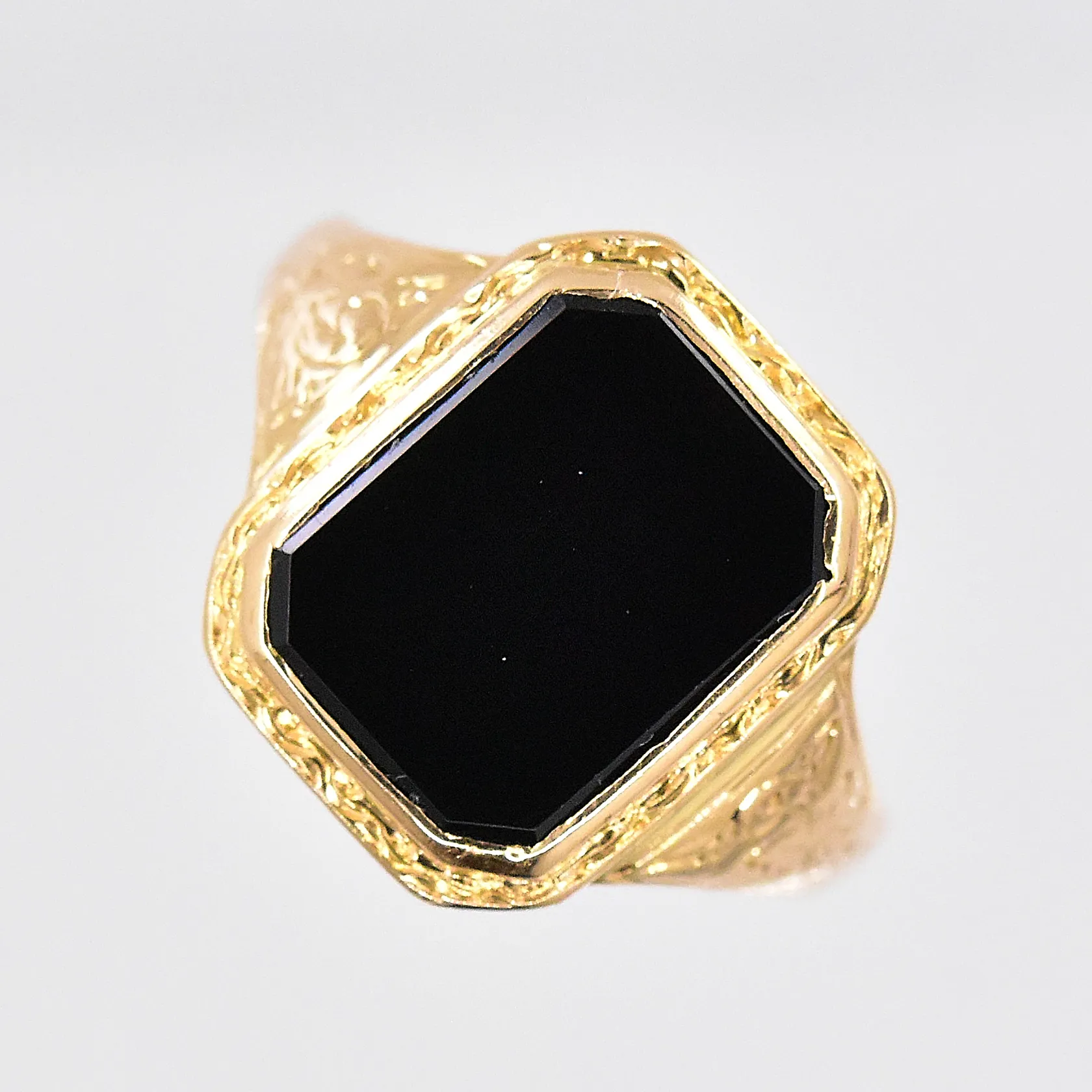 Klackring med svart platta, stl 18½, 18K Vikt: 5,7 g.