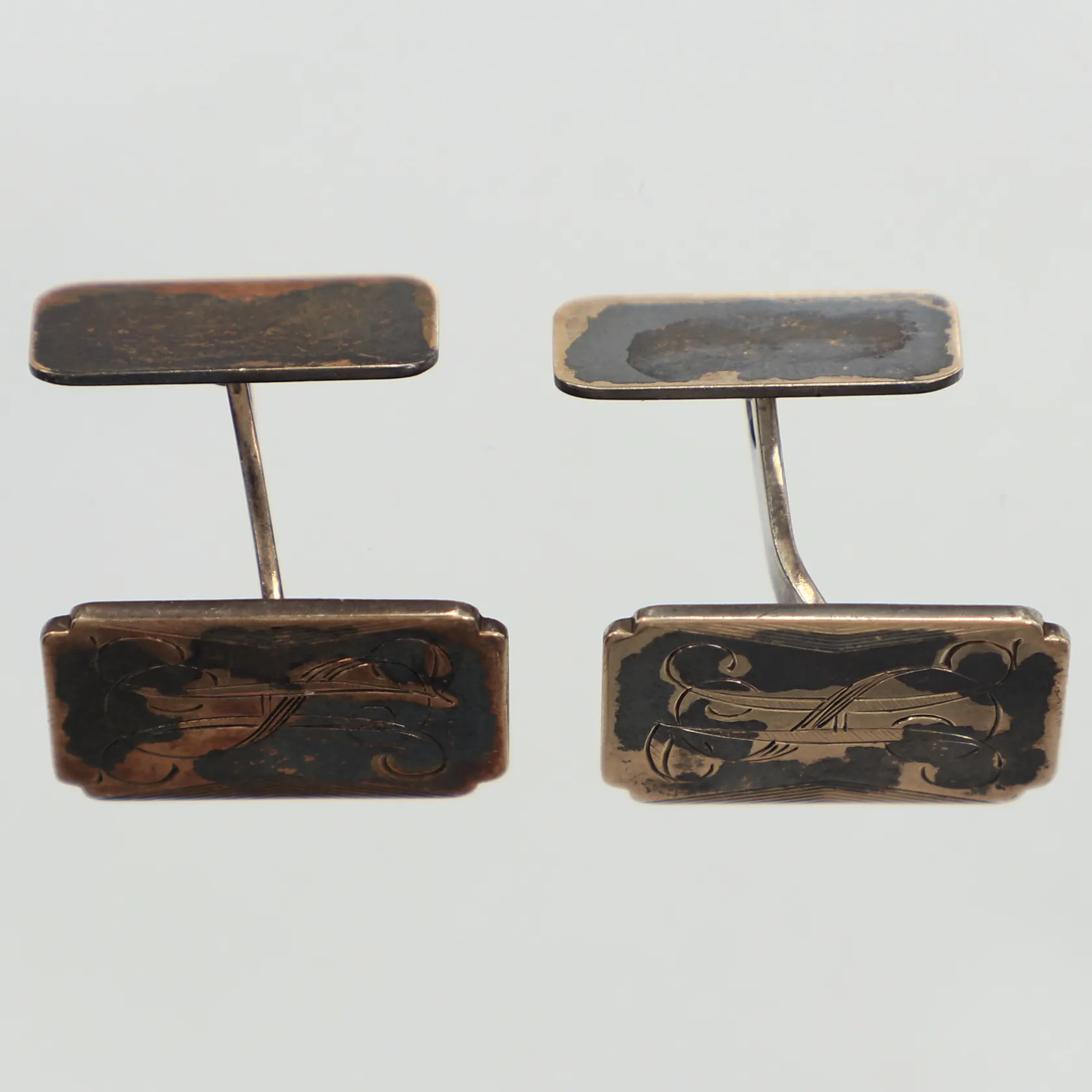 Ett par manschettknappar, längd 12,8mm, bredd 18,5mm, monogramgravyr, 830/1000 silver Vikt: 7,8 g.