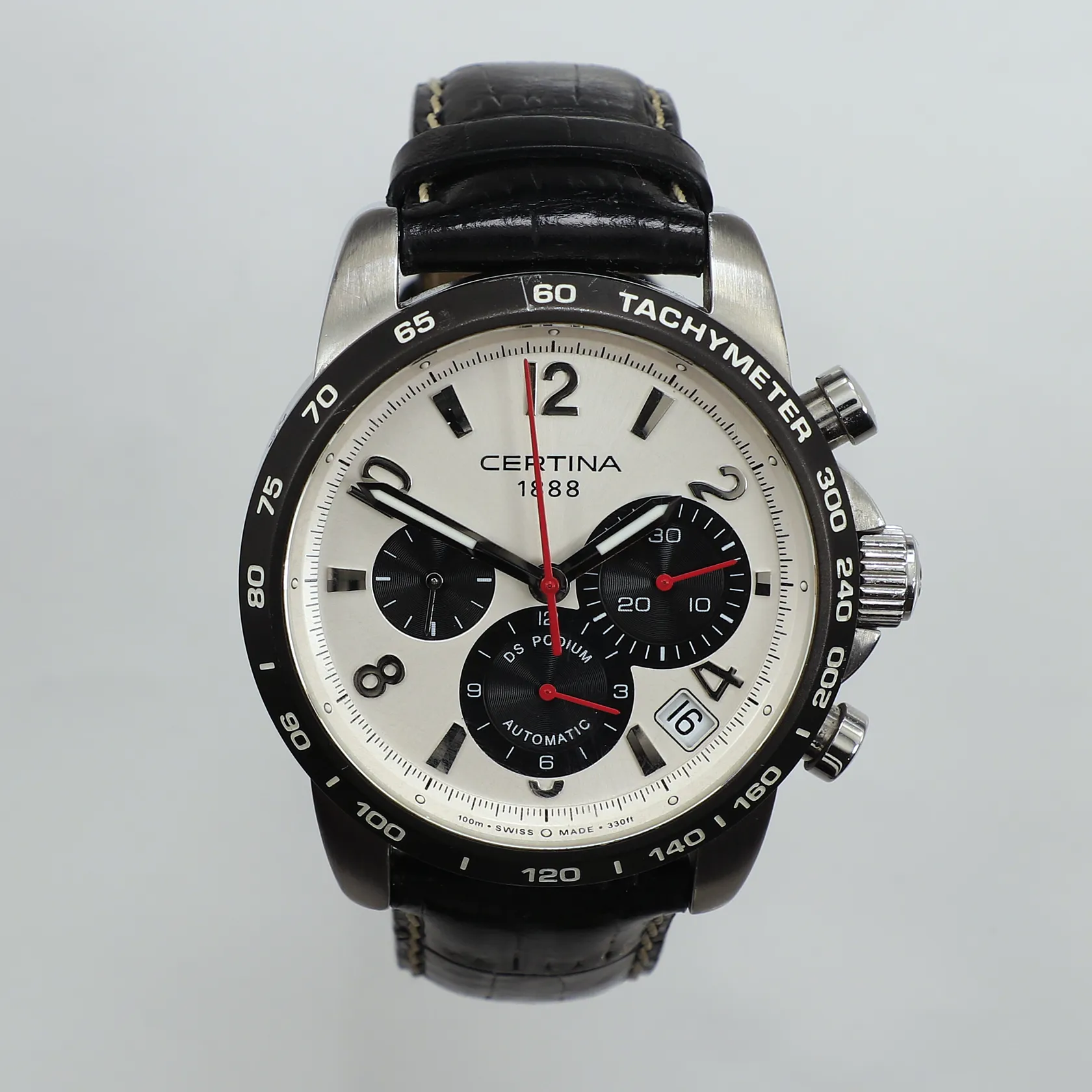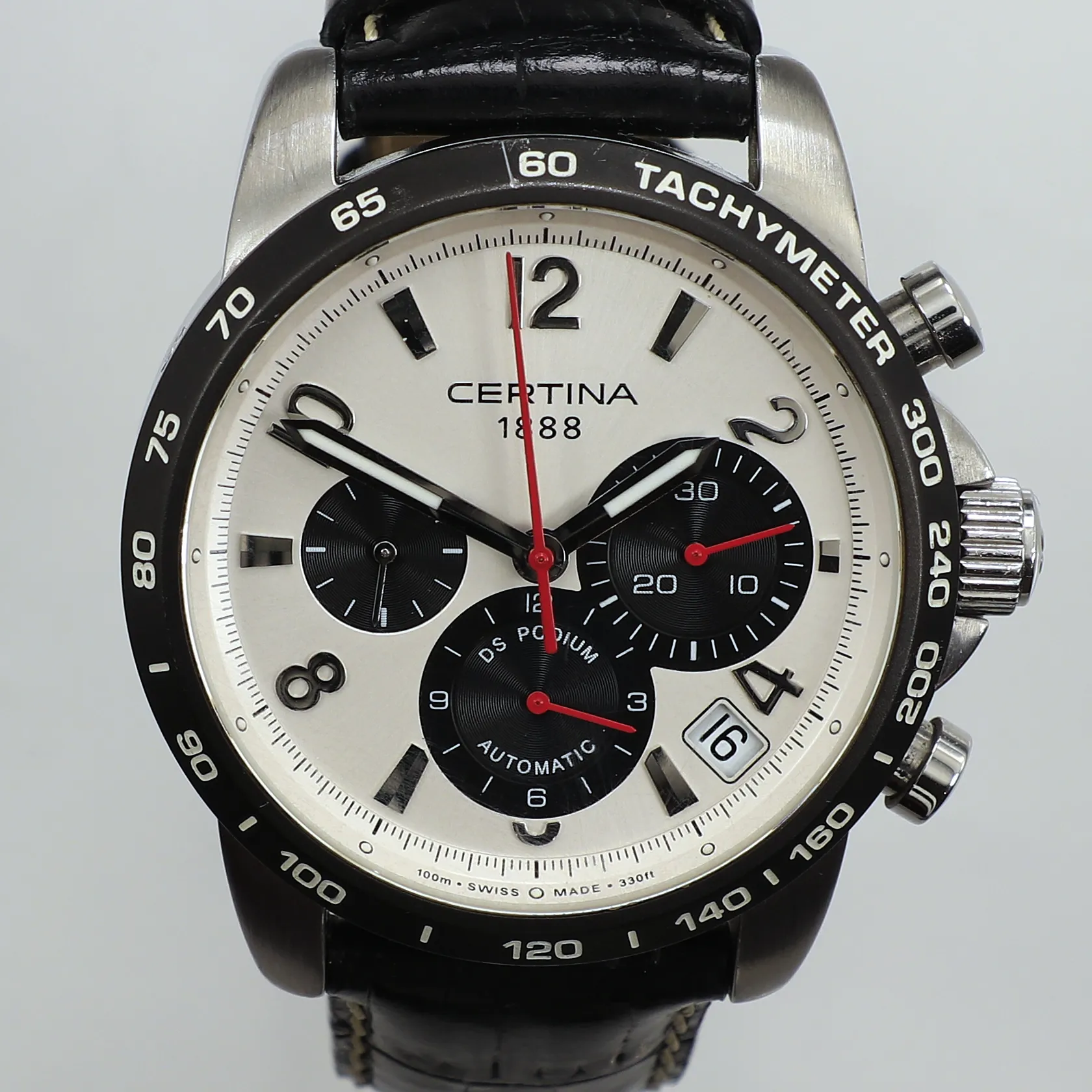 Herrur Certina DS Podium, Valgranges, Ø44mm stål, automat, kronograf, datum, glasbaksida, refnr: C001614A, serienr: TKM-BC-11138RC+, läderband med viklås, repa på ringen, cert och box