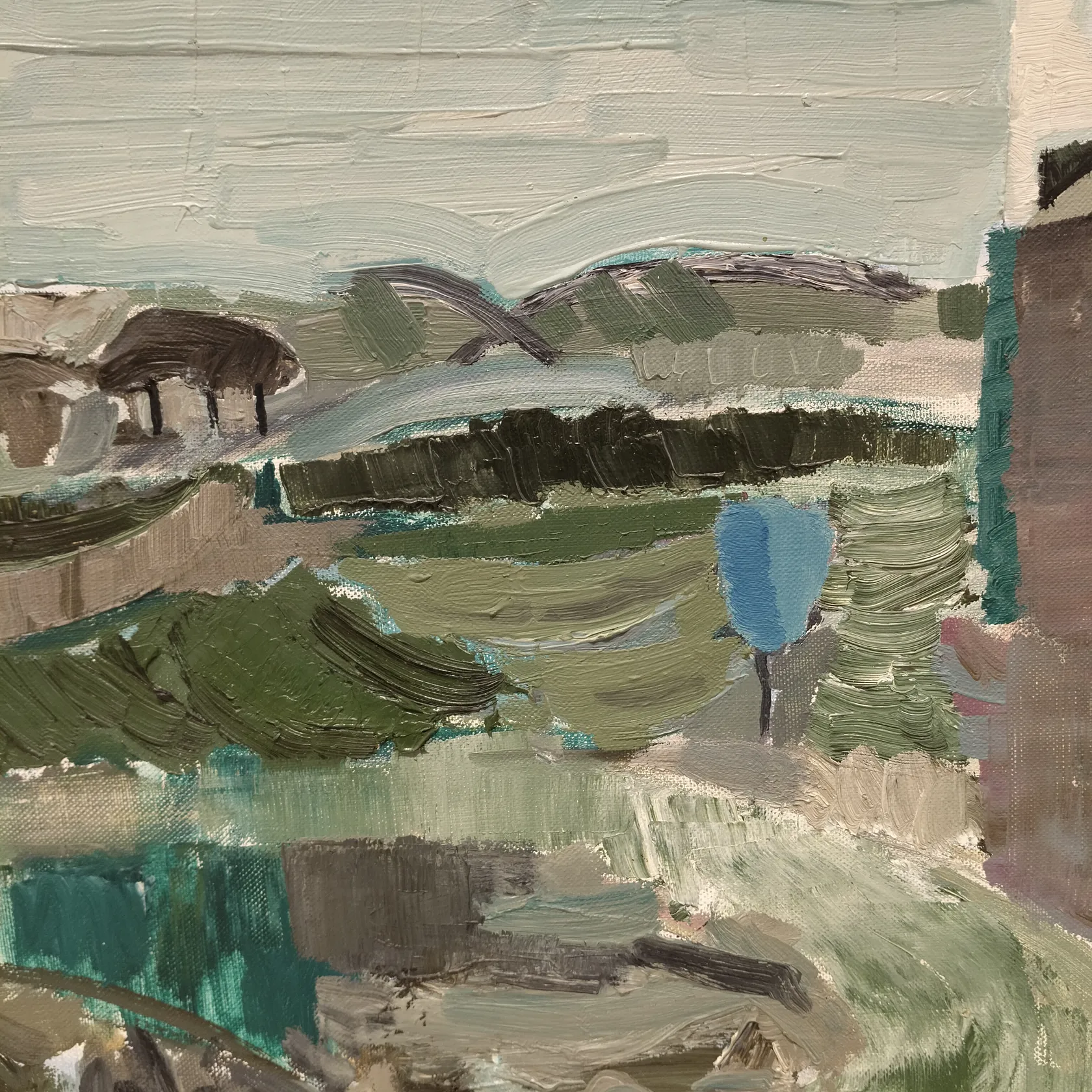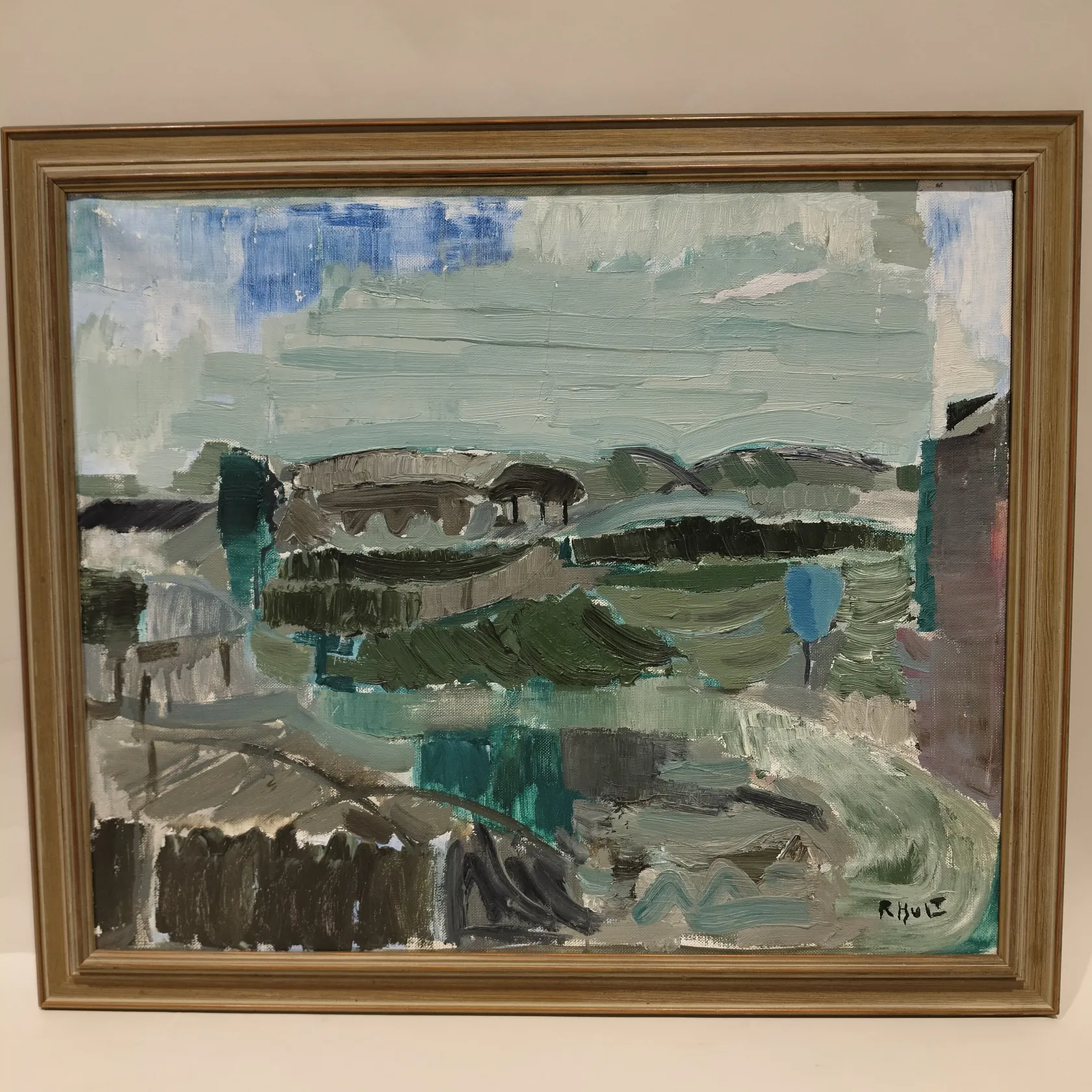 Tavla Ragnar Hult, (1916-1986) olja på duk, dalsländskt landskap, signerad, daterad 1961, något lös duk, färgbortfall, Skickas med postpaket. Omfattas av BUS-avgift.