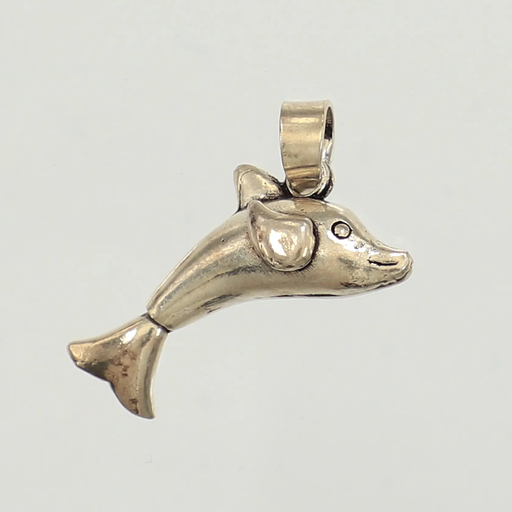 Hänge delfin, rörlig bakfena, ca 25mm, bredd 11mm, silver Vikt: 3,8 g.