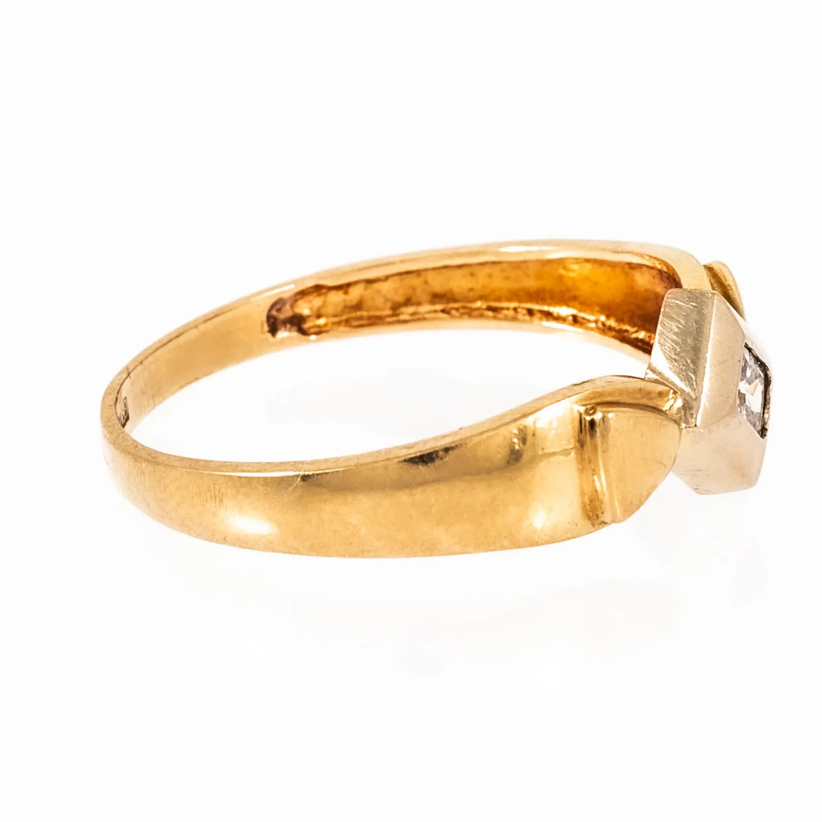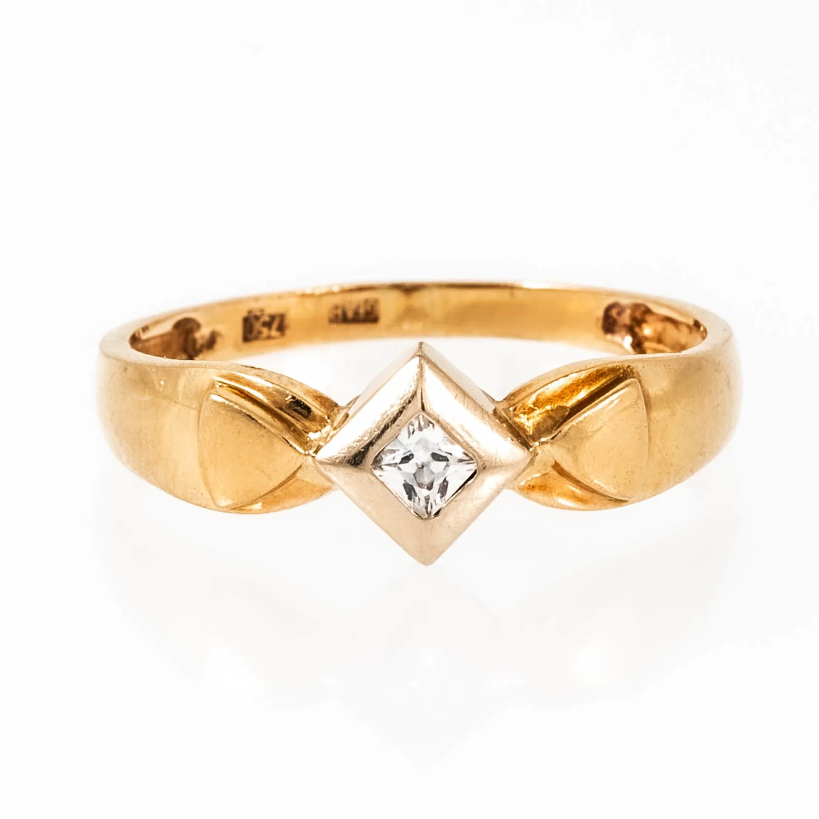 Ring i 18K guld med vit sten fattat i vitt guld. Den är 1,9 - 7 mm bred, är i storlek 18½ och väger 1,9g. Stämplad GFAB 750. Vikt: 1,9 g.