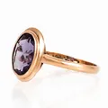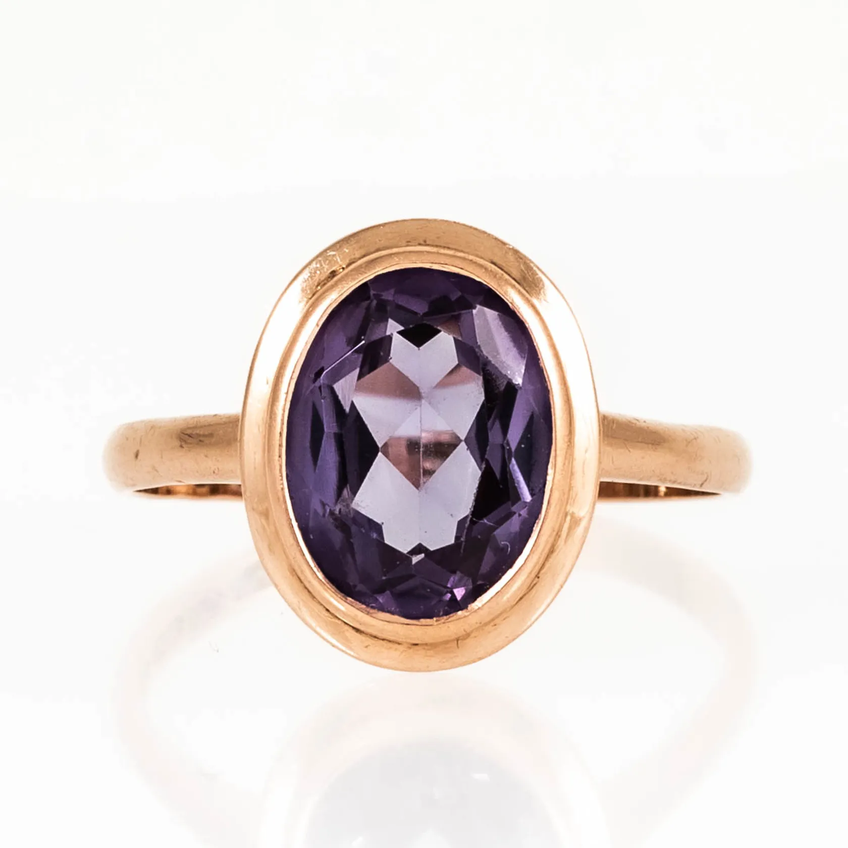 Ring i 14K guld med en blå/lila sten (färgskiftande i olika ljus). Den är i storlek 21, är 2,2 - 15,6 mm bred och väger 4,3g. Finska stämplar från 1957. Vikt: 4,3 g.