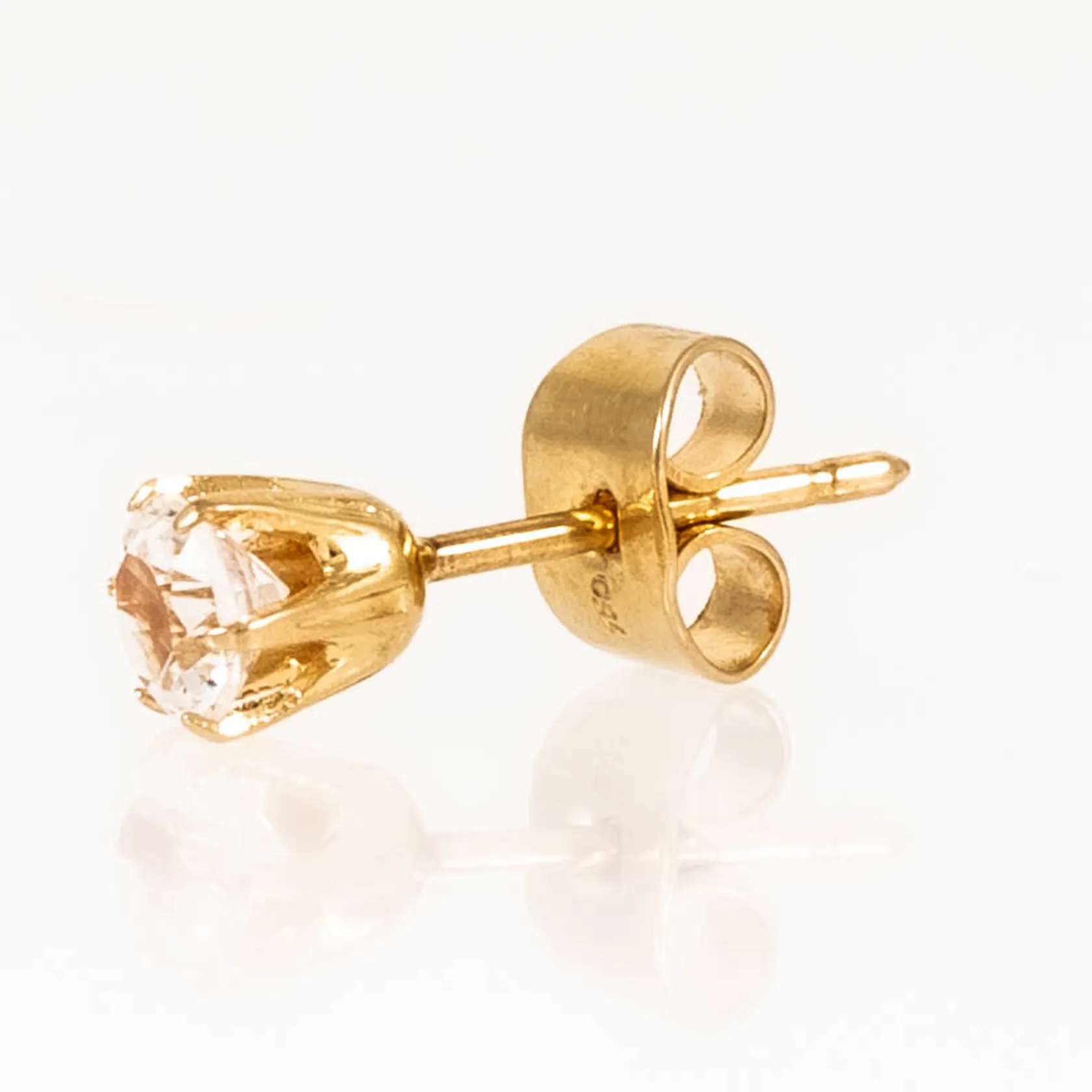 Ett örhänge i 18K guld med en vit sten Ø 4 mm. Vikt: 0,6g. Vikt: 0,6 g.