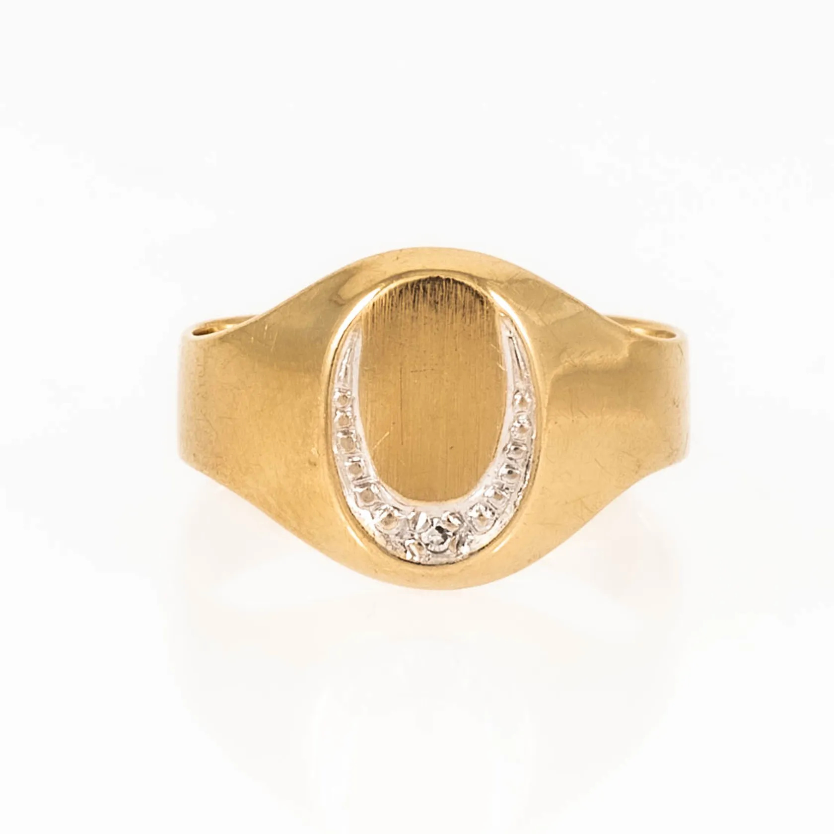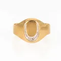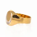 Klackring / lillfingerring i 18K guld med 1 x c:a 0,01ct åttkantslipad diamant; fattad i vitt guld. Den är i storlek 15¾, är 4 - 11 mm bred och väger 2,8g. Stämplad GFAB 750. Vikt: 2,8 g.