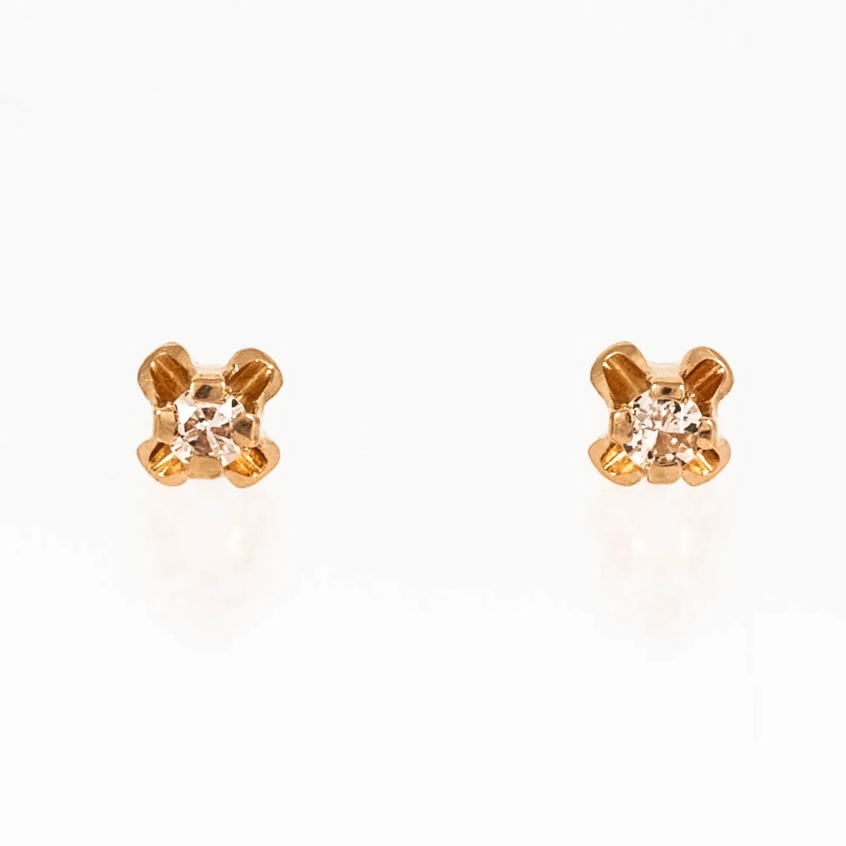 Örhängen i 18K guld med vita stenar. De är Ø 5 mm och väger 0,9g. Vikt: 0,9 g.