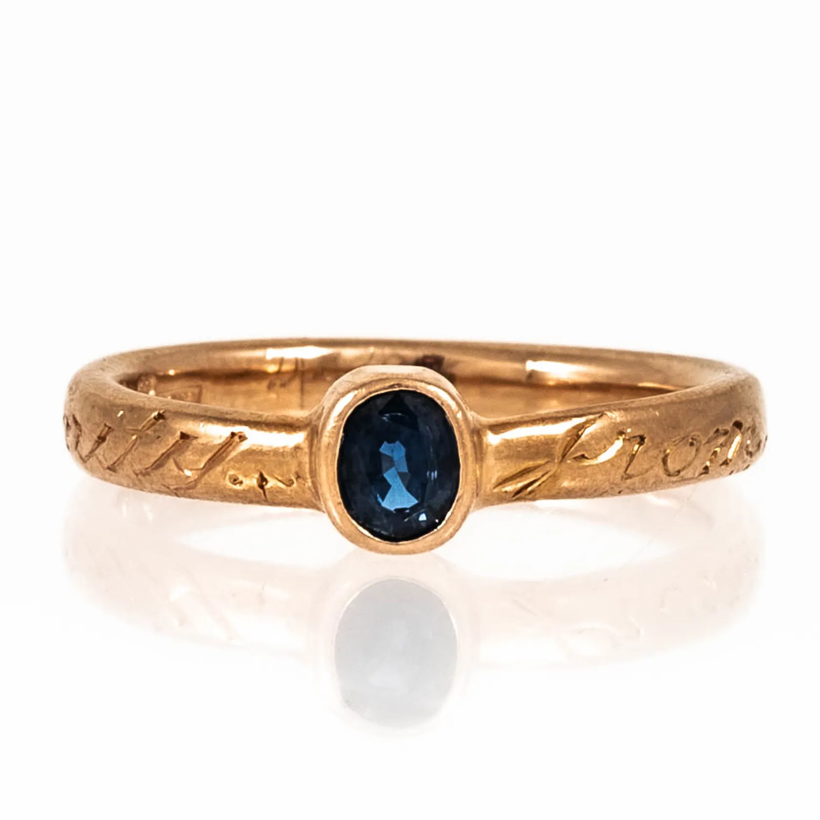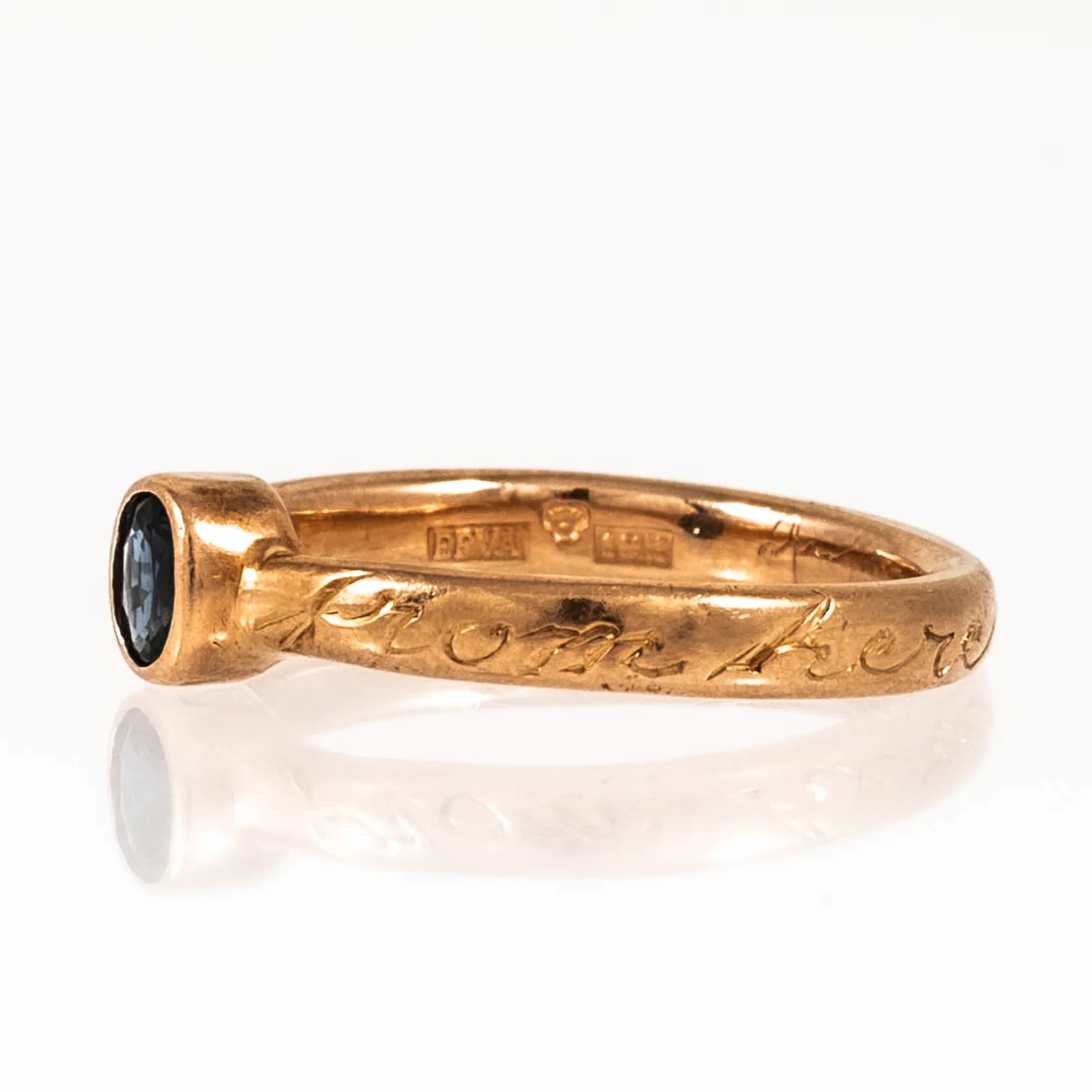 Efva Attling: ring i 18K guld "From Here To Eternity" med en ovalslipad blå safir 0,25ct. Den är i storlek 15¾, är 2,6 - 4,8 mm bred och väger 3,0g. Stenstorlek S 0,25ct ingraverad. Vikt: 3 g.