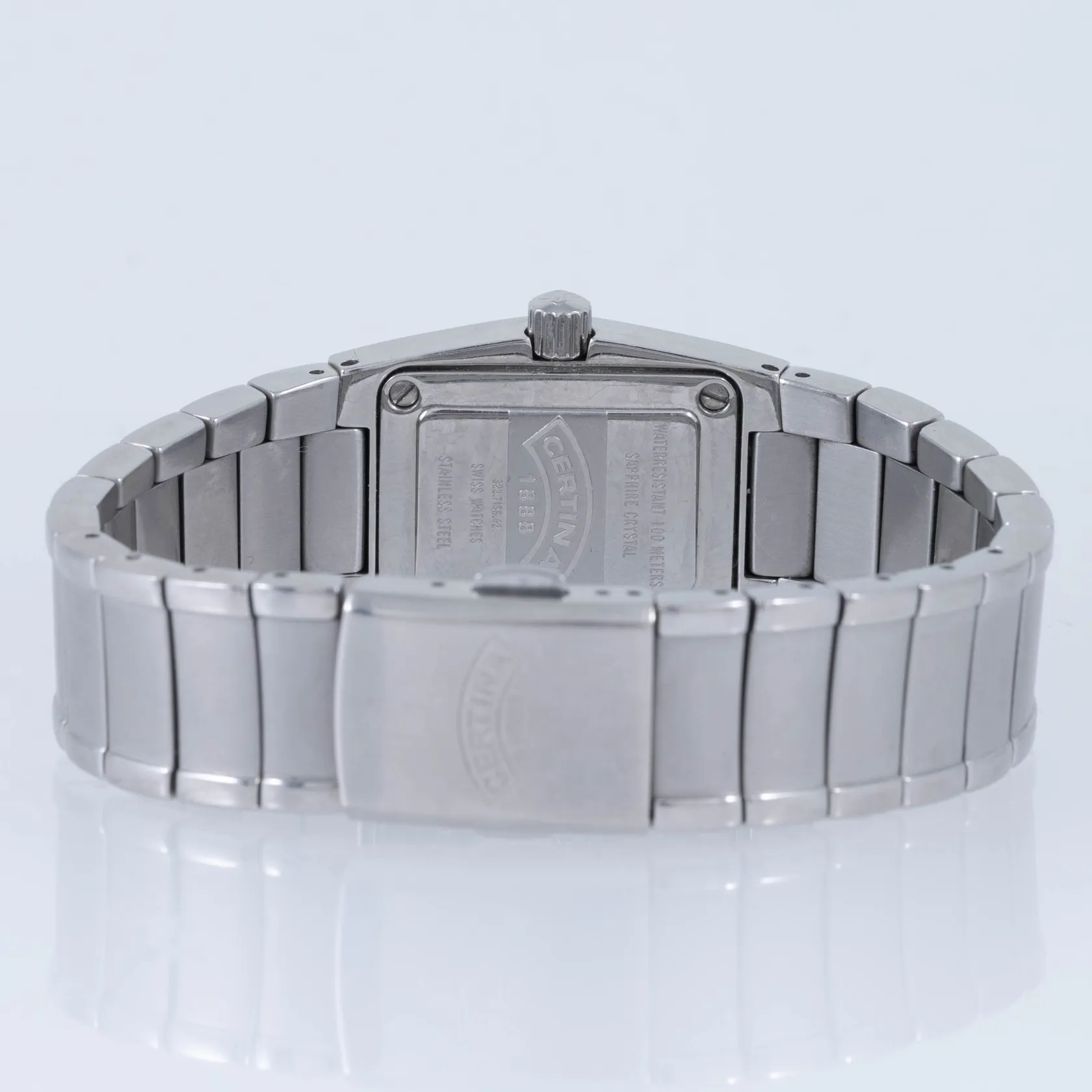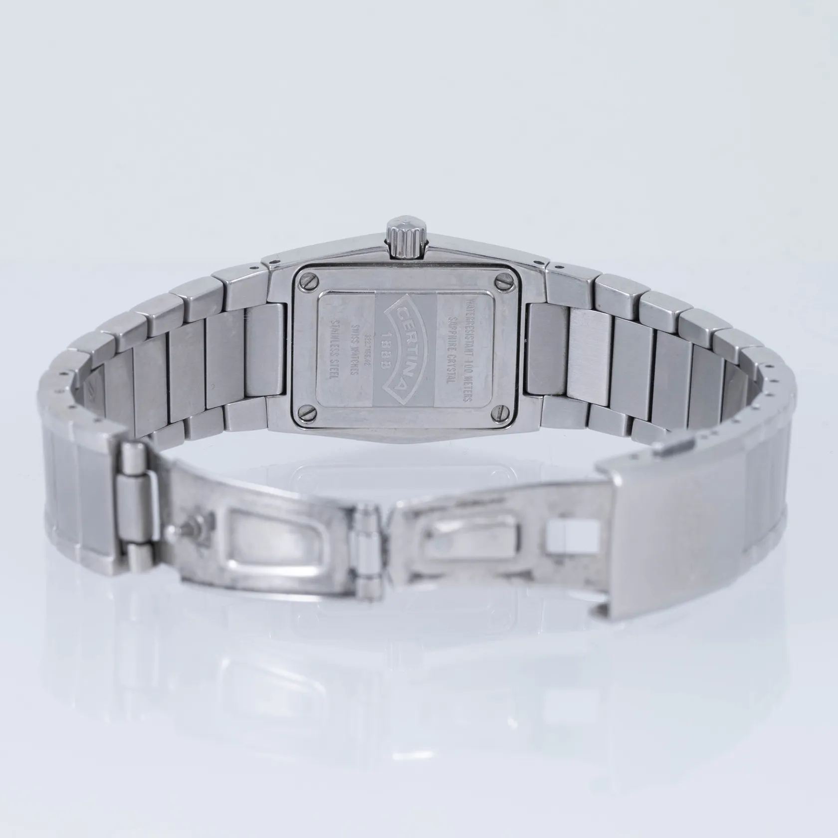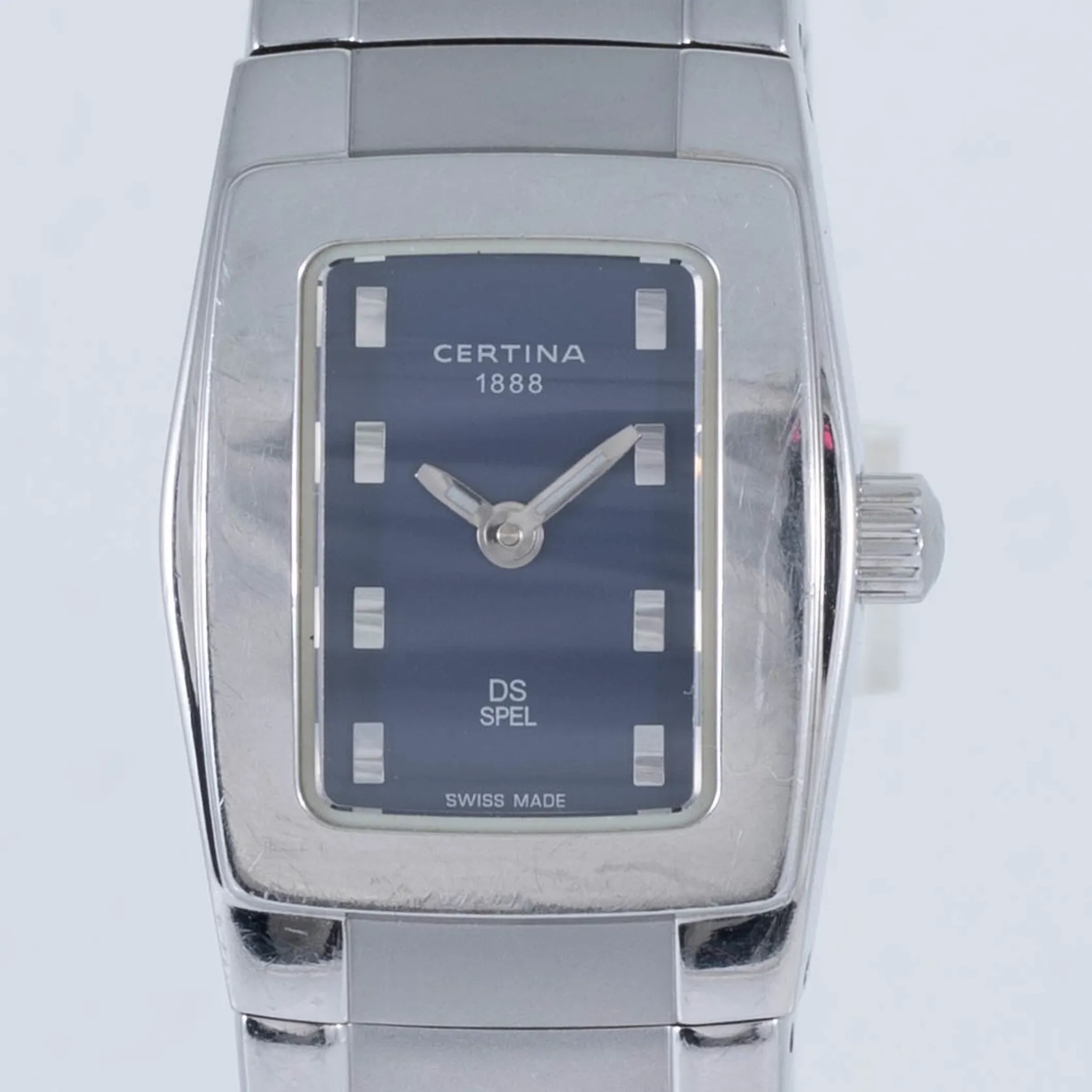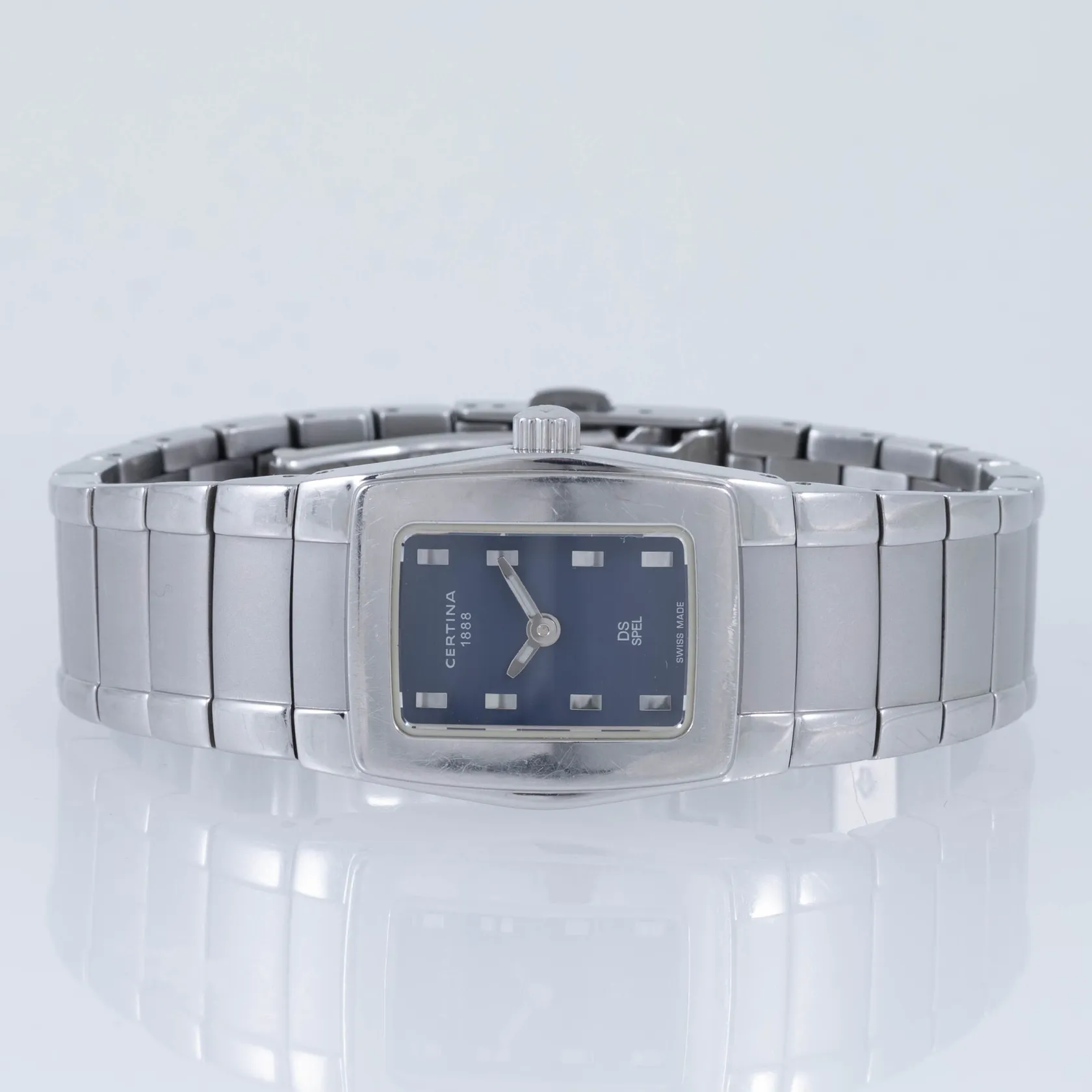 Damur Certina DS Spel, stål, boett ca 33 x 23 mm, safirglas, quartz, ref.nr 322.7155.42, marinblå urtavla, stållänk, innermått ca 17 cm, bruksslitage. Går ej, batteribyte krävs? Inga tillbehör.