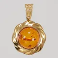 Hänge med brun sten, Ø19mm, längd inkl ögla 28mm, 18K, Vikt: 5,7 g.