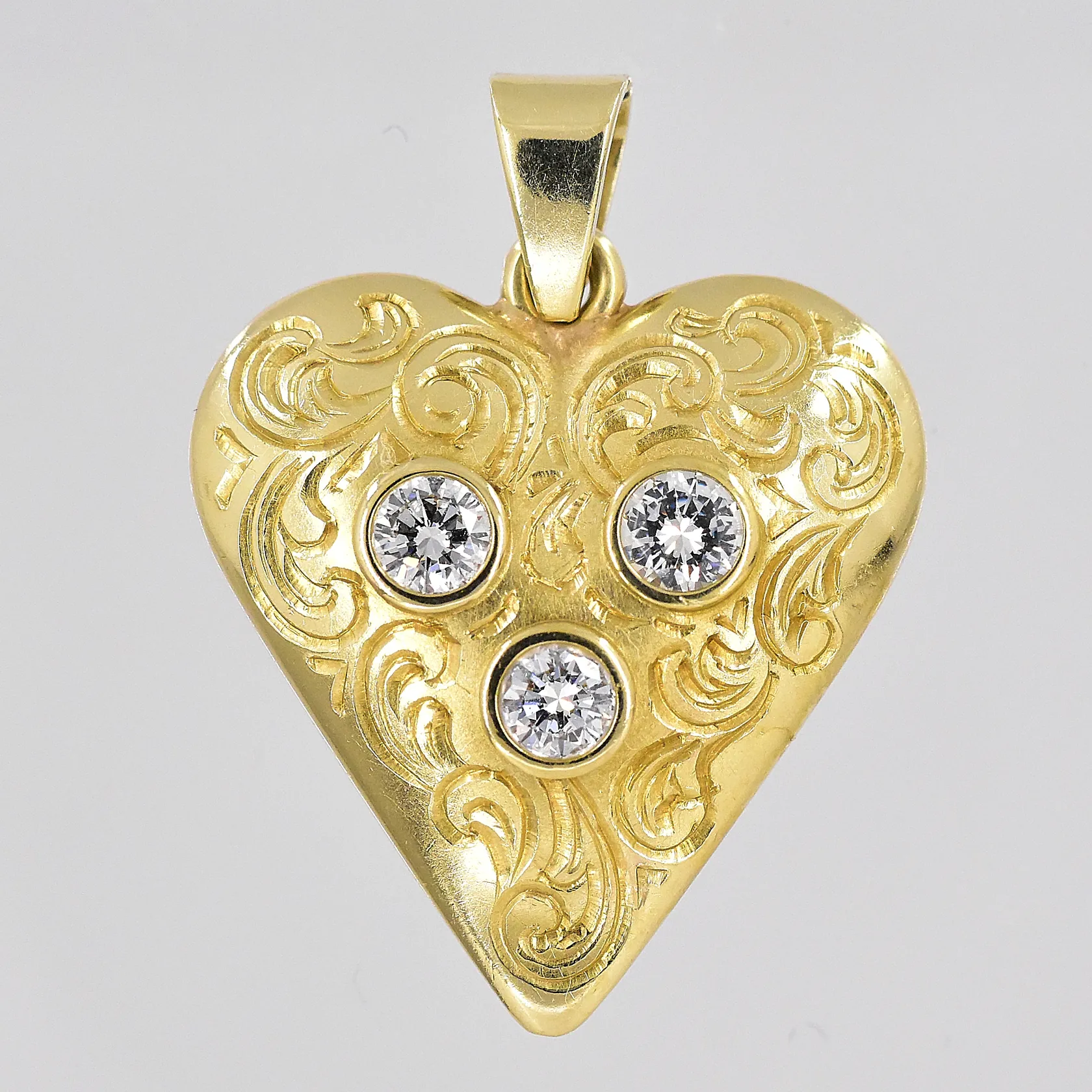 Hänge hjärta, diamanter ca 3x0,15ct, 23x30mm inklusive ögla, 18K Vikt: 8 g.