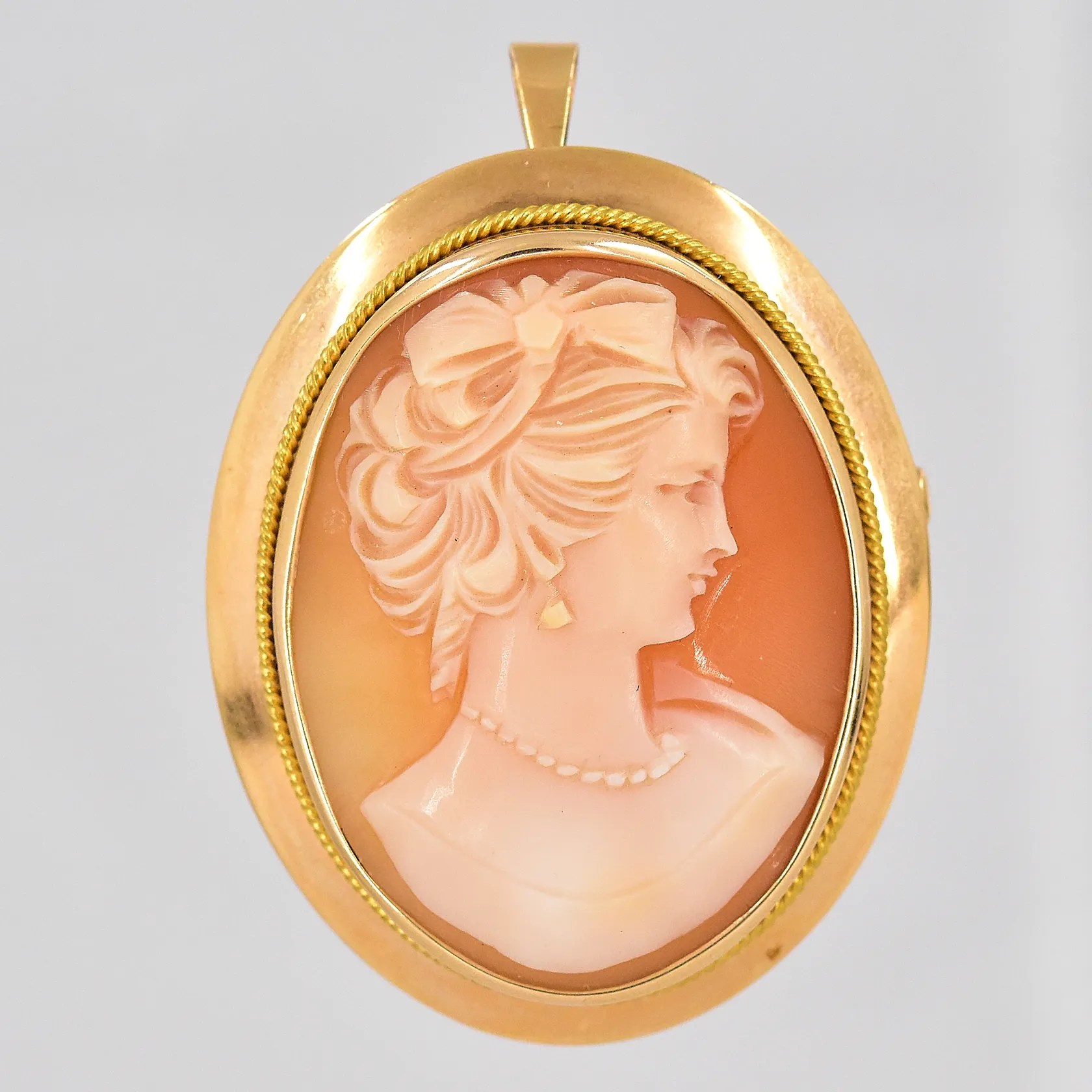 Hänge Camé, 34x58mm inklusive ögla, 14K, bruttovikt 9,8g Vikt: 9,8 g.