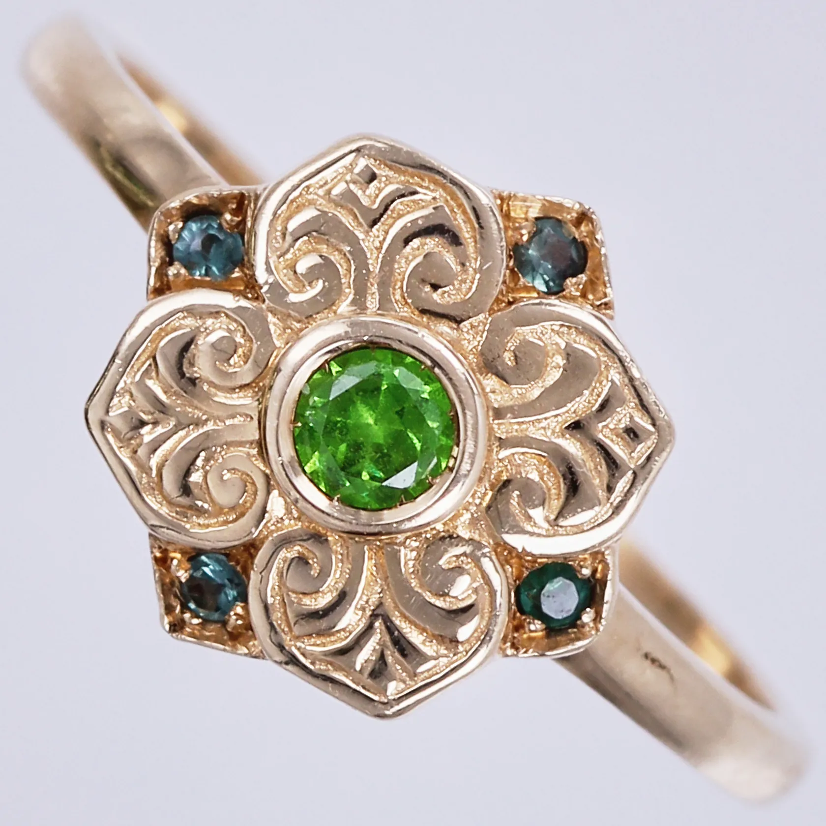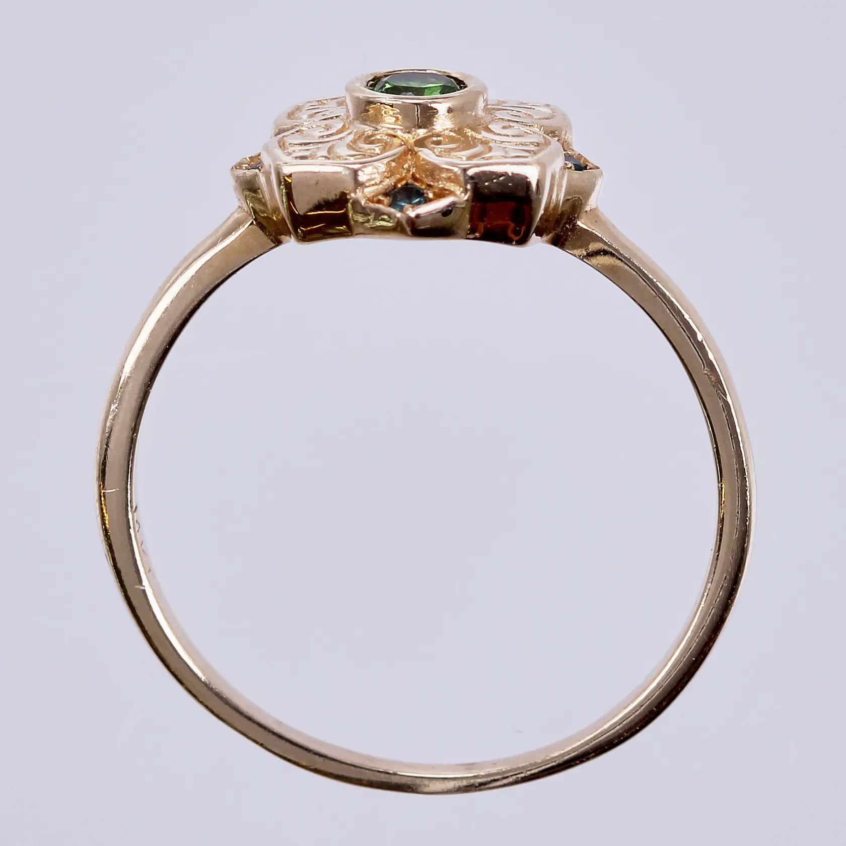 Ring med stenar, stl: 17 ¾, bredd ca 1-10mm, 14K Vikt: 3,2 g.