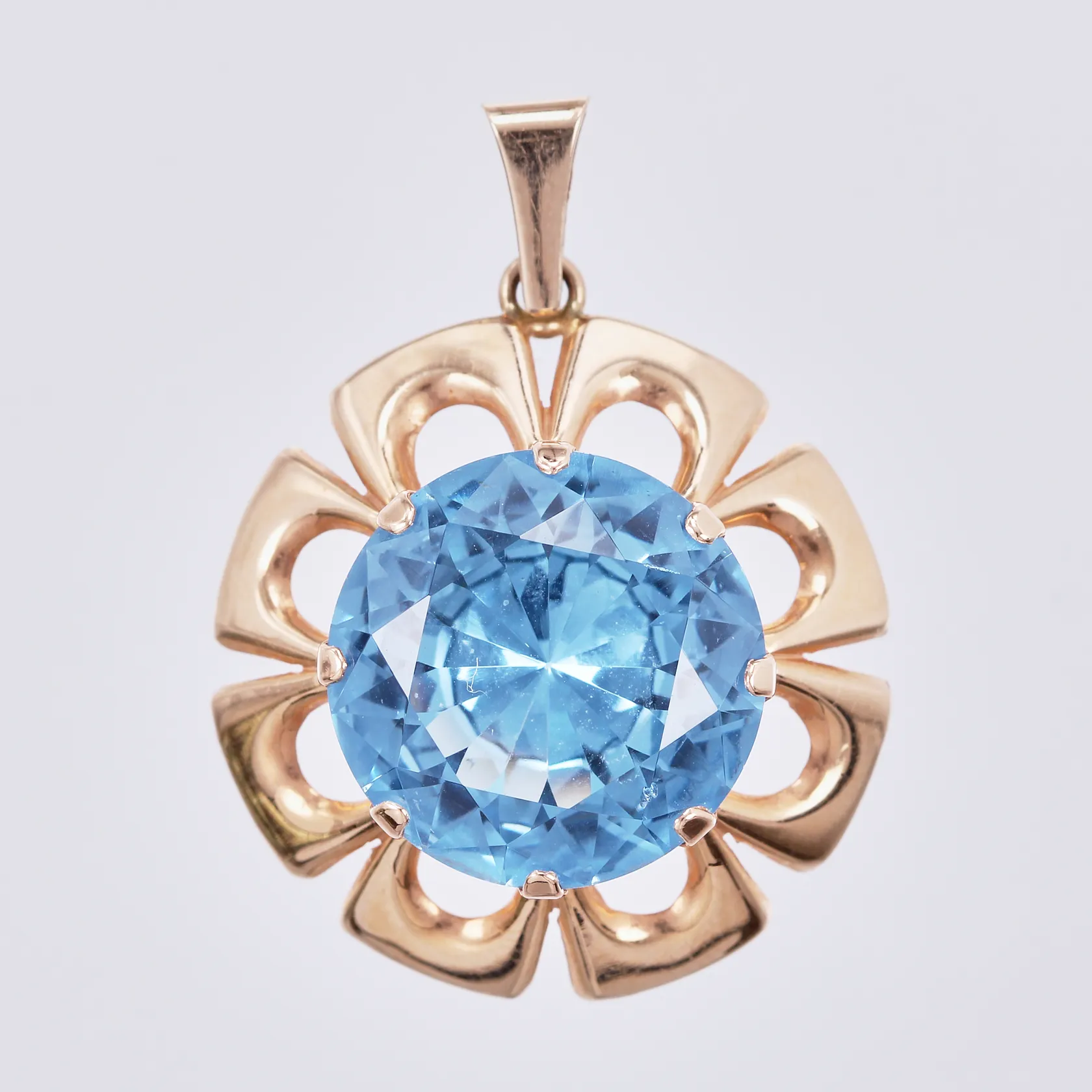 Hänge med syntetisk sten, finska stämplar Ø 25mm, 14K Vikt: 4,7 g.