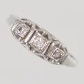 Ring, diamanter 3x totalt 0,14ctv enligt gravyr, stl 18¼, bredd 1,7 - 6,3mm, slitage, vitguld 18K Vikt: 3,8 g.
